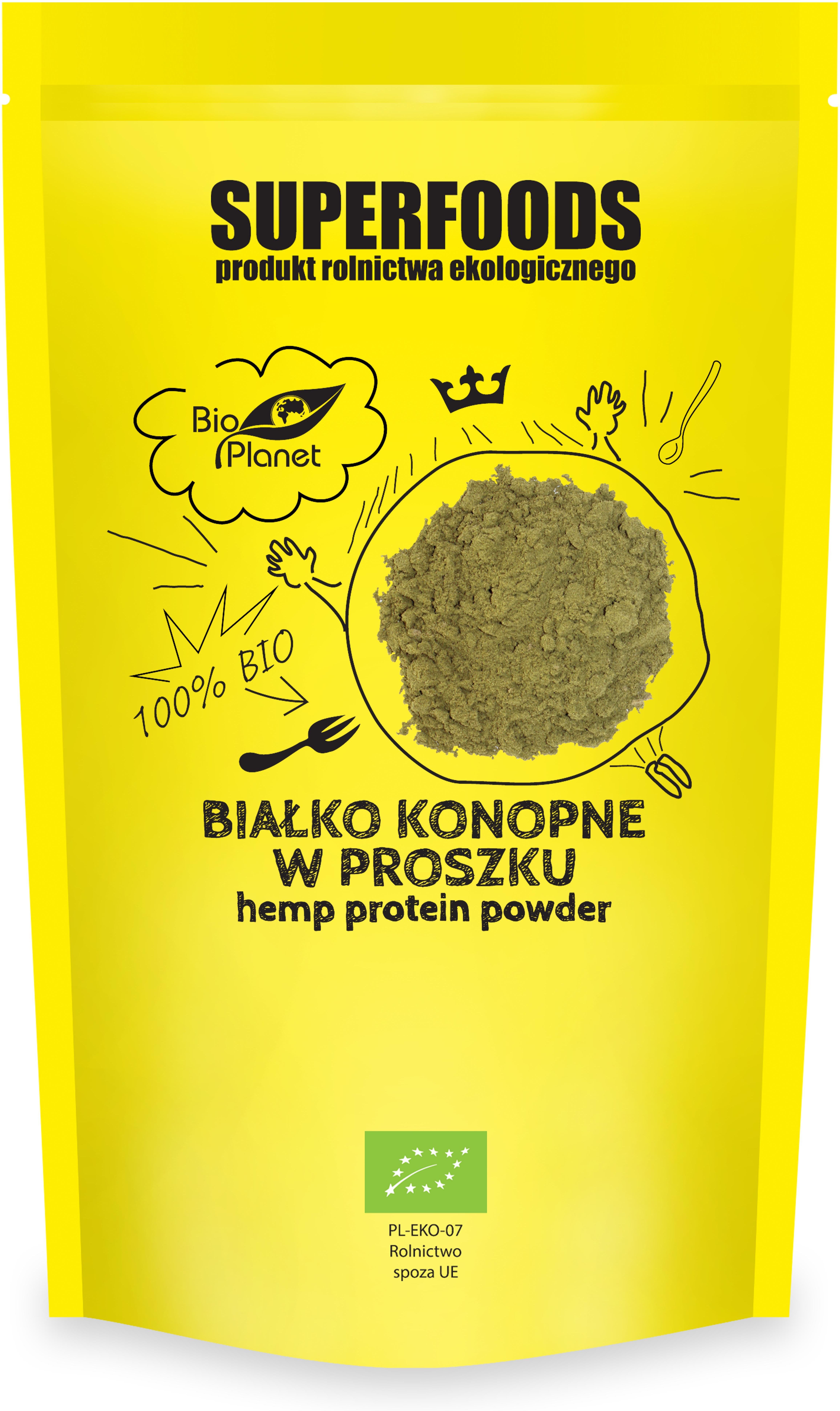 BIAŁKO KONOPNE W PROSZKU BIO 150 g - BIO PLANET BIO PLANET - seria SUPERFOODS SKŁADNIKIekologiczne białko konopne w proszku.OPIS:Białko z ekologicznych nasion konopi pozostawia na długo uczucie sytości. Idealnie sprawdzi się dla osób będących na diecie wysokobiałkowej, wegańskiej, a także uprawiających sport. SPOSÓB PRZYGOTOWANIA5 łyżeczek (15 g) produktu wymieszać z 200 ml soku, MLEKA, napoju roślinnego lub wody.WARTOŚĆ ODŻYWCZA W 100 gWartość energetyczna 1516 kJ/363 kcalTłuszcz 11 gw tym kwasy tłuszczowe nasycone 1,3 gWęglowodany 4,2 gw tym cukry 4,2 gBłonnik 24 gBiałko 49 gSól 0 gINFORMACJA ALERGENNAProdukt może zawierać: ZBOŻA ZAWIERAJĄCE GLUTEN, ORZESZKI ZIEMNE, ORZECHY, NASIONA SEZAMU, soję.ZALECANE WARUNKI PRZECHOWYWANIAPrzechowywać w suchym i chłodnym miejscu. Kraj pochodzenia: Litwa Ilość w opakowaniu zbiorczym: 1 Wysokość opakowania jednostkowego (cm): 23.00 Głębokość opakowania jednostkowego (cm): 7.00 Masa netto (g): 150 Gwarantowany termin przydatności (w dniach): 240 Szerokość opakowania jednostkowego (cm): 13.00 Producent: BIO PLANET - seria BIAŁKA Bez Cukru: BEZ CUKRU (w składnikach) CERTYFIKAT BIO: CERTYFIKAT BIO Kraj pochodzenia składników (słownik BP): Rolnictwo UE WEGAŃSKI: WEGAŃSKI WEGETARIAŃSKI: WEGETARIAŃSKI Producent - nazwa i adres: BIO PLANET S.A.. WILKOWA WIEŚ 7. 05-084 LESZNO BEZ GLUTENU (w składnikach): BEZ GLUTENU (w składnikach)