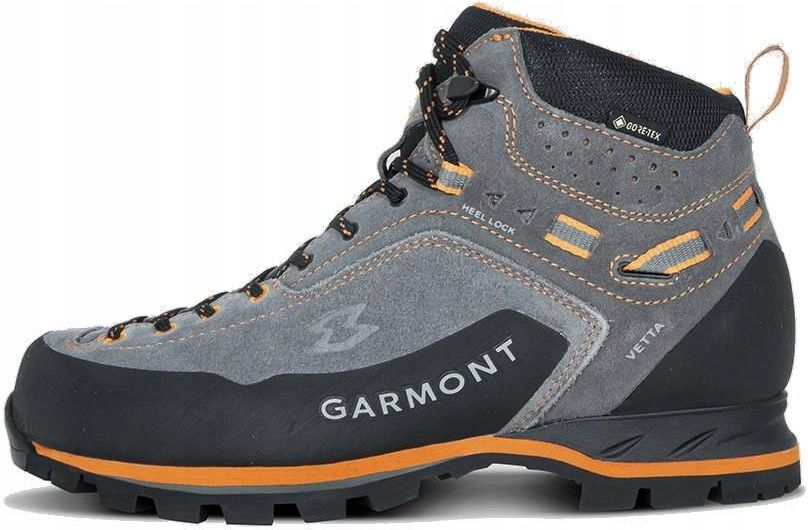 Garmont - Buty VETTA GORE-TEX Buty nadające się zarówno do trekkingu, jak i do lekkich podejść. Bardzo lekkie buty trekkingowe z membraną GORE-TEX przeznaczone dla panów lubiących dłuższe wędrówki. To wygodne buty turystyczne o średniej wysokości, nadające się na wycieczki po skalnych trasach, a także na lodowce. Bardzo dobrze sprawdzą się w miejscach, gdzie podczas letniej wędrówki można trafić na lodowe pokrywy śnieżne, ponieważ są na tyle sztywne, aby bezpiecznie użyć z nimi dopasowanych raków paskowych. Posiadają lekko obniżoną cholewkę, dzięki czemu również świetnie nadają się jako buty podejściowe. Sztywna, antypoślizgowa podeszwa VibramMATON umożliwia pokonywanie stromych, kamienistych terenów i dobre trzymanie na różnorodnej nawierzchni. Cholewkę buta wykonano z mocnej skóry zamszowej o grubości 1.8 mm, która gwarantuje wygodę użytkowania. Wodoodporna membranaGORE-TEX chroni obuwie przed przemoczeniem, dzięki czemu nie trzeba obawiać się lekkiego deszczu, chodzenia po mokrej trawie czy nieuważnego wejścia do kałuży. Lekko wyprofilowany czubek buta umożliwia pokonywanie prostych dróg wspinaczkowych, dzięki czemu but nadaje się również na Via-ferraty. Mocno ogumowane przody, boki i tył buta zabezpieczają but i nogę przed kamieniami, otarciami, ostrymi krawędziami skał. Buty wyposażone w elementy konstrukcji Garmont a.d.d.: asymetryczne sznurowanie, dużo miejsca dla dużego palca, wkładki na wysokości kostek, niejednakową wysokość cholewki oraz asymetrycznie wyprofilowany język. Przeznaczenie: piesze wycieczki, trekking, via ferraty, na alpejskie lodowce, jako but podejściowy. Główne cechy: but o obniżonej cholewce, dzięki czemu może być butem zarówno trekkingowym, jak i podejściowym; wodoodporna membrana; przyczepna podeszwa. Szczegóły: skóra zamszowa o grubości 1.8 mm; zachowująca doskonałą przyczepność i amortyzację podeszwaVIBRAM Maton; membranaGORE-TEX; wyściółka GORE-TEX Performance Comfort; mocno ogumowane boki, tył oraz przód obuwia; Frame Flex - system amortyzujący oraz poprawiający stabilność stóp w butach; sznurowanie za pomocą systemu Heel Lock - taśma ściągająca tył buta podczas sznurowania, co zapewnia dobre trzymanie pięty w bucie, jej stabilizację i minimalizowanie otarć; waga: 1220 g (rozmiar 42, dane producenta). Technologie: GORE-TEX - membrana, która utrzymuje optymalny klimat dla Twoich stóp podczas wielu rodzajów aktywności outdoorowych i rożnych warunków pogodowych. Zapewnia wodoszczelność i doskonałą oddychalność, dzięki czemu stopy pozostają suche; VIBRAM- to syntetyczna podeszwa opracowana przez słynnego włoskiego producenta Vitale Bramaniego - nazwa produktu pochodzi od jego imienia i nazwiska. Historia podeszwy zaczęła się od powrotu Bramaniego z tragicznie zakończonej ekspedycji w 1935 roku - w włoskich Alpach pozostało jego pięciu kolegów wspinaczy. Jedną z głównych przyczyn wypadku były używane wówczas podkute buty, które ześlizgiwały się w mikstowym terenie. W 1937 roku z pomocą firmy oponiarskiej Pirelli, Bramani wypuścił na rynek pierwsze podeszwy swojego pomysłu. Do dziś Vibram cieszy się wysokim uznaniem wśród wspinaczy, alpinistów i turystów górskich. Ciągle jest najczęściej używaną podeszwą na świecie; Vibram® Maton -daje doskonałą przyczepność w czasie podejść, jest idealna na Via Ferraty, a dzięki specjalnemu profilowi w przedniej części pozwala na pokonywanie prostych dróg wspinaczkowych; Frame Flex Technology Light zapewnia stabilizację i amortyzację energii wytwarzanej przez stopy podczas chodzenia, zwiększając komfort użytkowania nawet w najtrudniejszych warunkach. Materiał cholewki: skóra zamszowa Membrana: GORE-TEX Wyściółka: GORE-TEX Performance Comfort Podeszwa: VIBRAM MATON Ocieplenie: nie Waga [g]: 1220 Kolor: dark grey / orange Instrukcja_mierzenia: buty Gwarancja: 24 m-ce