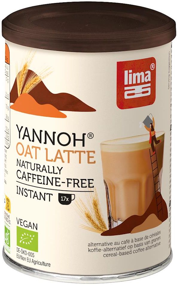 KAWA ZBOŻOWA INSTANT YANNOH LATTE BIO 100 g - LIMALIMA (sosy sojowe, kawy zbożowe)SKŁADNIKI ekstrakt z OWSA* 61 %, kawa zbożowa rozpuszczalna* 25 % (ŻYTO*, cykoria*, JĘCZMIEŃ*, żołędzie*, figi*), olej słonecznikowy*. (*certyfikowany składnik ekologiczny) OPIS Kawa zbożowa to świetne zastępstwo tradycyjnej kawy prawdziwej. Pozbawiona kofeiny i bardzo smaczna jest produktem, który możesz spożywać każdego dnia na śniadanie. Kawa zbożowa cechuje się nie tylko doskonałym smakiem, ale też walorami zdrowotnymi. Świetnie smakuje zarówno na gorąco, jak i na zimno w upalne dni. Idealna jest także z mlekiem i cukrem. Napój z uwagi na swoje naturalne właściwości z dodatkiem MLEKA może być z powodzeniem podawany dzieciom na śniadanie. SPOSÓB PRZYGOTOWANIA 2 łyżeczki kawy zalać gorącą wodą i wymieszać. WARTOŚĆ ODŻYWCZA W 100 g Wartość energetyczna - 1942 kJ/463 kcal Tłuszcz - 17 g w tym kwasy tłuszczowe nasycone - 2,1 g Węglowodany - 72 g w tym cukry - 28 g Błonnik - 5,0 g Białko - 2,9 g Sól - 0,18 g INFORMACJA ALERGENNA Może zawierać mleko. UWAGA Może zawierać śladowe ilości kofeiny, kawa jest produkowana w zakładzie, w którym wytwarzane są również produkty z kofeiną, ale sam produkt jest naturalnie bezkofeinowy. ZALECANE WARUNKI PRZECHOWYWANIA Przechowywać w suchym miejscu. Producent:LIMA (sosy sojowe, kawy zbożowe)