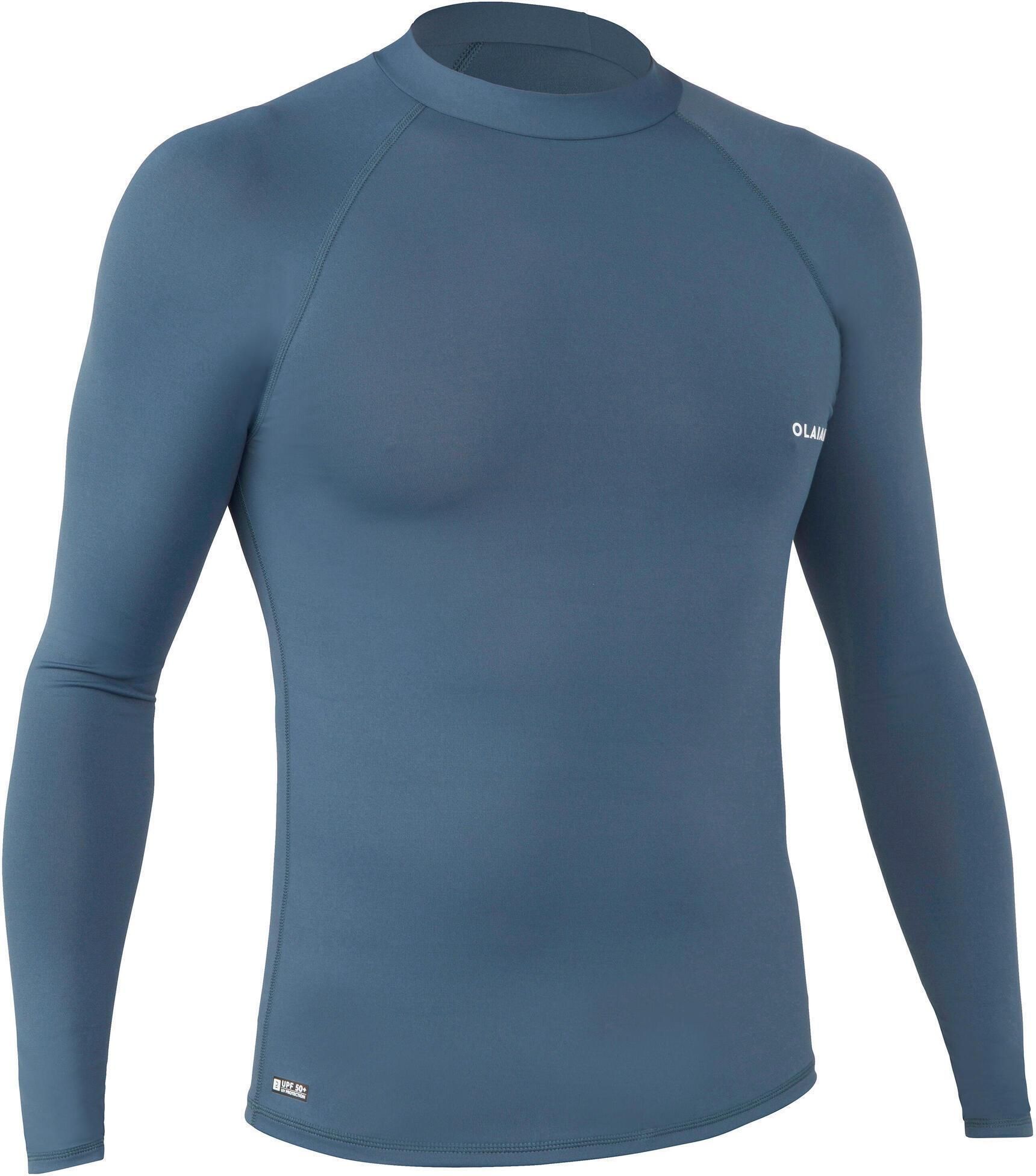 Olaian Top Uv Surfing Długi Rękaw 100 Męski Niebieski Szary Nowogród Bobrzański