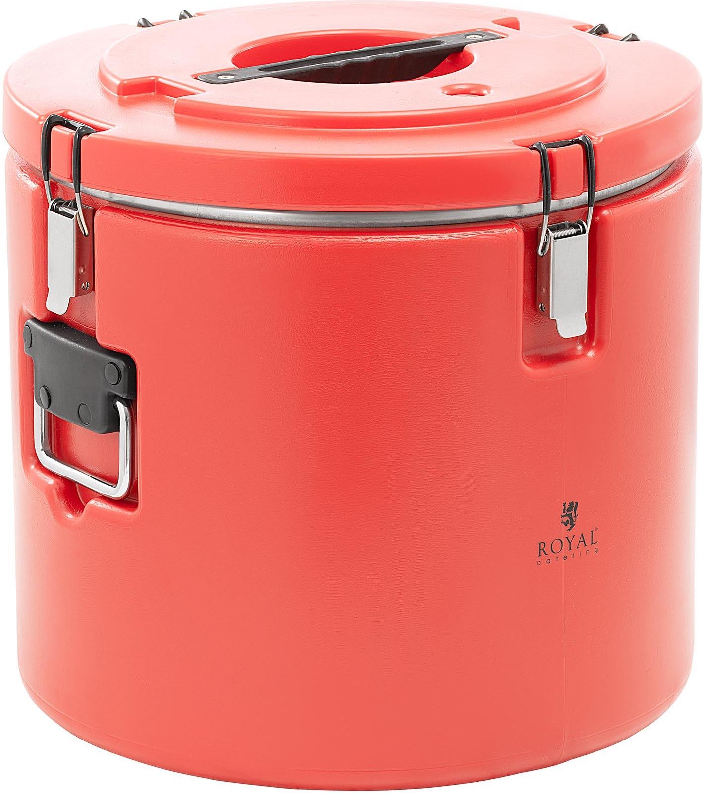 Termos gastronomiczny - 30 l - Royal Catering marki Royal Catering Model: RC_TT_4 Nr katalogowy: 10012480 Stan produktu: Nowy Najważniejsze cechy produktu Pojemność – do przewożenie oraz utrzymywania w cieple lub zimnie żywności i napojów (do 30 l) Niezawodność – tylko 1-2°C/h straty temperatury dzięki podwójnej izolacji i bezpiecznemu zamknięciu Praktyczność – dwa uchwyty ułatwiające transport Profesjonalność – stabilność, odporne na uderzenia dno pojemnika, łatwa obsługa i czyszczenie Trwałość – solidna konstrukcja połączona z wytrzymałymi materiałami, takimi jak stal nierdzewna i plastik (PE/PU) Specyfikacja techniczna Materiał - Stal nierdzewna, Plastik Kolor - Czerwony Wymiary [mm] - Ø410 x 380 Grubość izolacji [mm] - 10-28 Utrzymanie temperatury - 1-2°C/h (strata temperatury) Instrukcja obsługi - Tak Pojemność - 30 l Wysokość paczki [cm] - 45 Długość paczki [cm] - 45 Szerokość paczki [cm] - 44 Waga paczki [kg] - 7.4 Wysokość produktu [cm] - 39 Długość produktu [cm] - 43 Szerokość produktu [cm] - 43 Waga produktu [kg] - 6.3 Liczba paczek - 1 Termos gastronomiczny do łatwego transportu dań gorących i zimnych Termos gastronomiczny marki Royal Catering gwarantuje bezpieczny i łatwy transport gorącej i zimnej żywności oraz napojów. Duży termiczny pojemnik transportowy Ø410 x 380 mm został specjalnie zaprojektowany dla ekskluzywnych placówek gastronomicznych, takich jak restauracje i hotele, a także dla dużych kuchni, stołówek lub usług cateringowych. Termos stalowy – dzięki niemu zimna kawa czy zupa to już przeszłość! Pojemnik termiczny ma pojemność 30 l. Został wewnątrz zrobiony z żaroodpornej, higienicznej stali nierdzewnej. Zewnętrzna warstwa została natomiast wykonana ze szczególnie odpornego tworzywa sztucznego. Dzięki dwuściennej izolacji temperatura jedzenia i napojów zmniejsza się tylko o około 1-2°C/h. Wieko zamykane jest na cztery zatrzaski, które gwarantują bezpieczny transport. Dodatkowo kontener posiada odporną na wstrząsy podstawę oraz dwa uchwyty ułatwiające przenoszenie. Dzięki pierwszorzędnemu wykonaniu i gładkim powierzchniom pojemnik termiczny ze stali nierdzewnej błyszczy również z higienicznego punktu widzenia. Powierzchnia termosu jest odporna na zbrudzenia, a żywność w pojemniku ze stali nierdzewnej zachowuje swój smak i zapach. Wysoka jakość wykonania umożliwia również łatwą konserwację oraz wyczyszczenie pojemnika. Zawartość przesyłki Termos gastronomiczny Instrukcja obsługi Zdjęcia produktu