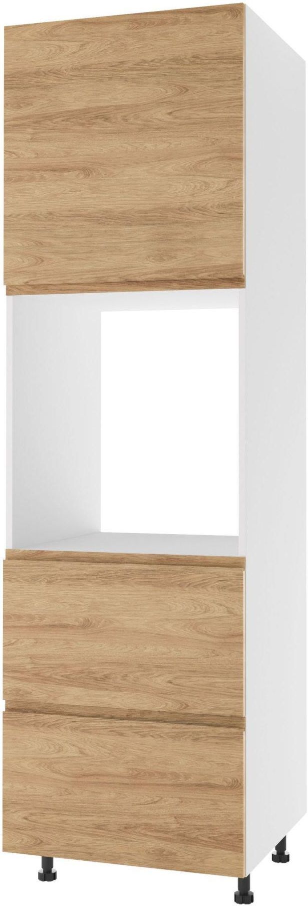 ALBA SŁUPEK LEWY DPS2-60-197 MODERNBOX HIKORA to pojemny słupek do kuchni wyposażony we wnękę przeznaczoną pod zabudowę piekarnika, podwójne drzwi uchylne lewostronnie oraz dwie szuflady. Model posiada innowacyjne okucia i prowadnice, które zapewniają systemem cichego domknięcia. Kolekcja kuchni Komfort wyróżnia się ciepłym odcieniem powierzchni oraz strukturą usłojenia, która zapewnia naturalny i przytulny efekt. Słupek do kuchni wykonany z płyty laminowanej, wykazuje właściwości odporne na czynniki mechaniczne.