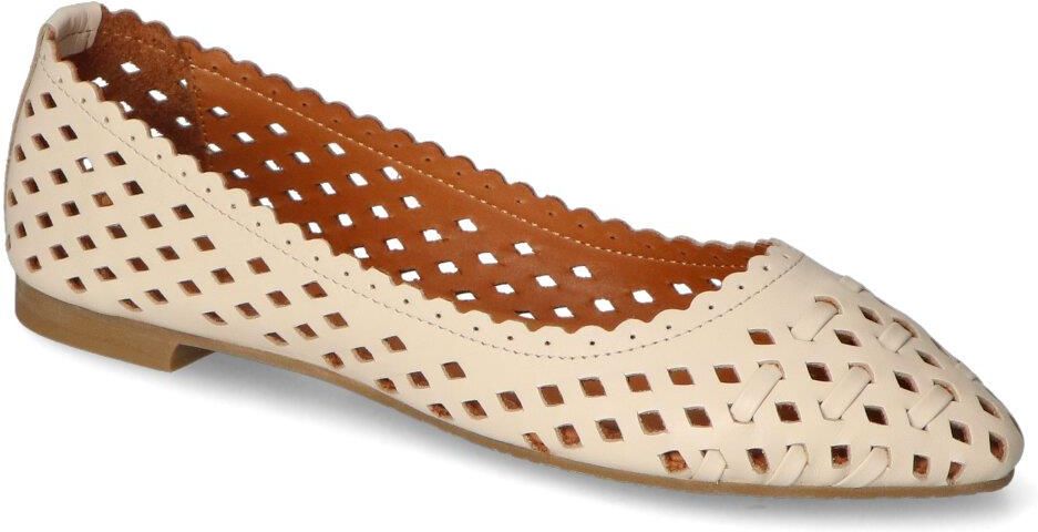 Wygodne baleriny popularnej marki Ravini :- wykonane z najlepszej jakości skóry naturalnej licowej - wkładka wykonana ze skóry naturalnej aby zapewnić komfort podczas użytkowania - wnętrze pokryte zostało skórą naturalną - obcas o wysokości 1 cm zapewnia odpowiednią stabilizację - beżowy kolor i ażurowy wzór tworzy efekt, który zachwyci każdego!