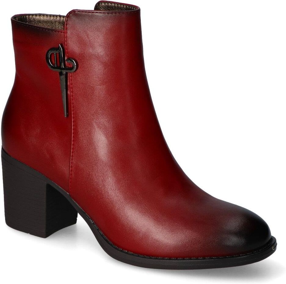 Botki M.Daszyński na słupku to idealny wybór dla kobiet, które pragną połączyć styl z wygodą. Wykonane z wysokiej jakości skóry ekologicznej, te botki charakteryzują się nie tylko eleganckim wyglądem, ale także ekologicznym podejściem do mody. Ich intensywny, czerwony kolor przyciąga uwagę i dodaje charakteru każdej stylizacji.Ocieplane wnętrze botków zapewnia komfort i ciepło w chłodniejsze dni, co czyni je doskonałym obuwiem na sezon jesienno-zimowy. Wysoki słupek dodaje elegancji, zapewniając jednocześnie stabilność, co umożliwia komfortowe poruszanie się przez cały dzień. Dodatkowe elementy, takie jak zamek błyskawiczny, ułatwiają zakładanie i zdejmowanie.Botki M.Daszyński to doskonałe uzupełnienie każdej garderoby, idealne na wyjścia ze znajomymi, do pracy czy na specjalne okazje. Wybierz te botki, aby cieszyć się stylem, komfortem i funkcjonalnością w każdej sytuacji.