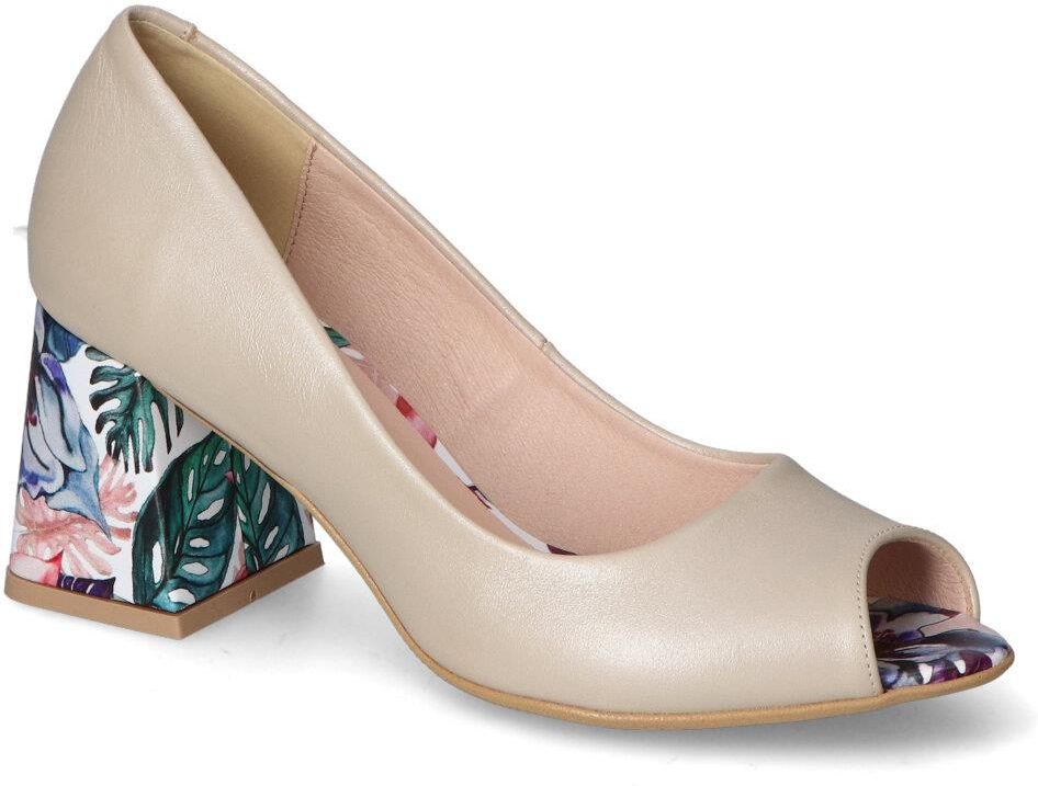 Czółenka popularnej marki Lewski: - cholewka wykonana została ze skóry naturalnej licowej - wnętrze zostało pokryte skórą naturalną aby zapewnić komfort podczas użytkowania - wkładka wewnętrzna wykonana została ze skóry naturalnej - obcas o wysokości 7 cm zapewnia stabilizację - beżowy kolor w połączeniu z kwiatowym wzorem tworzy idealne połączenie, które zachwyci każdego!