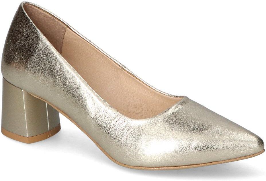 Eleganckie czółenka popularnej marki Veronna: - cholewka wykonana została ze skóry naturalnej licowej - wnętrze pokryte skóra naturalną aby zapewnić komfort podczas użytkowania - wkładka wewnętrzna wykonana została ze skóry naturalnej - obcas o wysokości 5,5 cm zapewnia stabilizację - złoty kolor i modny fason tworzą efekt, który zachwyci każdą kobietę!