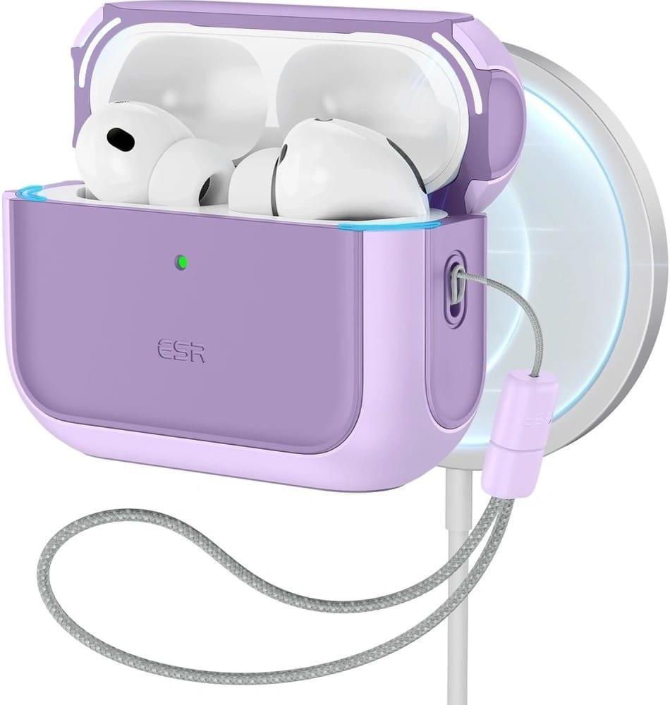 ESR Orbit HaloLock with MagSafe Do Apple AirPods Pro 3 Wersja kolorystyczna: Lavender (fioletowa) Rodzaj ochrony: 360 stopni Materiał: PC, TPU W zestawie: smycz Ochrona: przed upadkami, zarysowaniami, wstrząsami Kompatybilność z funkcją MagSafe Dopasowanie: precyzyjne Otwory na porty zewnętrzne: tak Dodatkowe cechy: praktyczne i funkcjonalne Kod producenta: 4894240289167 Kod produktu: 4894240289167 Maksimum komfortu! Orbit HaloLock od ESR to nowy wymiar wygody dla Twoich słuchawek! Dzięki MagSafe możesz cieszyć się błyskawicznym, bezprzewodowym ładowaniem bez zdejmowania etui. Mocne magnesy utrzymują słuchawki na miejscu, zapewniając stabilne i bezpieczne uzupełnianie energii w każdej chwili. Zawsze blisko! Zapomnij o stresie związanym ze zgubieniem swojego urządzenia! Dzięki dołączonej do zestawu smyczy możesz z łatwością zabezpieczyć je, przypinając do paska, torebki, czy czegokolwiek innego. To proste, a jednocześnie stylowe rozwiązanie sprawi, że Twoje urządzenie będzie zawsze pod ręką i bezpieczne. Prosto, szybko, nowocześnie! Masz dość uciążliwego zdejmowania etui za każdym razem, gdy chcesz naładować swoje słuchawki? Z ESR Orbit HaloLock to już przeszłość! Wystarczy podłączyć kabel lub położyć słuchawki na ładowarce indukcyjnej – bez potrzeby wyjmowania ich z etui. To idealne rozwiązanie dla tych, którzy cenią wygodę i nowoczesne technologie. Precyzyjnie dopasowane, z doskonale wykonanymi wycięciami na głośniki i diodę informującą o stanie naładowania, zapewnia funkcjonalność i elegancki wygląd. Zabezpiecz, ciesz się! Łączy dwie innowacyjne technologie – wytrzymałą, twardą powłokę z poliwęglanu (PC) oraz elastyczny, absorbujący wstrząsy materiał TPU. Dzięki tej wyjątkowej kombinacji Twoje urządzenie będzie nie tylko skutecznie chronione przed upadkami i zarysowaniami, ale również zyska nowy, stylowy wygląd. Wytrzymała konstrukcja zapewnia długotrwałą ochronę, a precyzyjnie zaprojektowane detale gwarantują idealne dopasowani