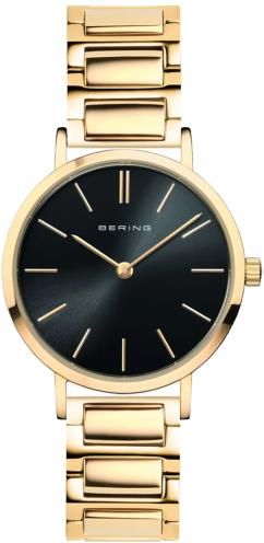 Mechanizm: Typ - KWARCOWY - Zasilany baterią srebrową, Koperta: Materiał - STAL NIERDZEWNA, Kształt - OKRĄGŁY, Kolor - ZŁOTY, Wymiary - SZEROKOŚĆ 29mm / GRUBOŚĆ 6mm, Wodoszczelność - 30M / 3ATM, Szkło - SZAFIROWE - duża odporność na zarysowania, Tarcza: Typ - ANALOGOWY - wskazówkowa forma prezentacji czasu, Kolor - CZARNY, Indeksy - w kolorze ZŁOTYM, Wskazówki - w kolorze ZŁOTYM, Pasek / Bransoleta: Typ - BRANSOLETA, Materiał - STAL NIERDZEWNA, Kolor - ZŁOTY, Szerokość przy mocowania - 14mm, Szerokość przy zapięciu - 12mm, Maksymalny obwód - 19cm Funkcje: BRAK. Informacje ogólne: Pochodzenie marki - DANIA PRZY ZAKUPIE OTRZYMUJESZ: oryginalny zegarek BERING, firmowe opakowanie BERING, kartę gwarancyjną dystrybutora.