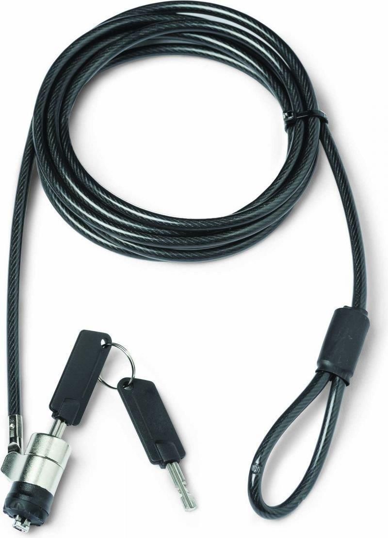 Linka zabezpieczająca T-Lock Pro, keyed, 3x7mm slot Linka zabezpieczająca laptop T-Lock Pro3x7mm Bardzo mocna linka do zabezpieczania wszelkiego rodzaju sprzętu IT. Notboock można ukraść w jednej chwili. Drogi sprzęt i ważne dane zostają utracone. Może to również wiązać się z dużą ilością pracy i dużymi wydatkami. Policja, ubezpieczenie, odzyskiwanie danych itp. Odpowiedzią jest ukierunkowana profilaktyka z wysokiej jakości zamkiem firmy DICOTA. Łatwe, wygodne i skuteczne. Idealny do użytku w biurze, w samochodzie lub w hotelu. Ten zamek DICOTA pasuje do wszystkich standardowych gniazd T-Lock (T-Bar*) dzięki zintegrowanemu gumowemu zderzakowi. Można skutecznie zabezpieczyć notebooki, projektory, drukarki i monitory. Stalowa linka o długości 200 cm i średnicy 5 mm została zaprojektowana tak, aby była wyjątkowo długa i mocna. W zestawie dwa klucze. Dzięki funkcji push-to-lock zamek można zabezpieczyć również bez klucza. Ten zamek jest wersją samodzielną i nie może być zintegrowany z nadrzędnym systemem zamków. Nadaje się do wszystkich urządzeń z powszechnie używanym gniazdem 3 x 7 mm Maksymalna ochrona przed kradzieżą, wyposażony w stalową linkę o grubości 5,0 mm Łatwa instalacja dzięki funkcji push-to-lock, w komplecie dwa klucze. Głowica zamka i cylinder obracają się o 360° Elastyczna gumowa listwa ochronna między obudową notebooka a zamkiem Funkcjonalny pasek na rzep do kompaktowego przechowywania i transportu Długość: 2 m Zamek: Klucz Akcesoria w zestawie: 2 x Klucz Kolor: Czarny,Srebrny Pozostałe parametry: Grubość linki 5 mm