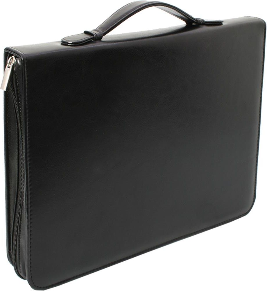 Budowa: posiada wygodną rączkę zamykana dookoła na zamek wewnątrz 3 kieszenie na dokumenty w tym jedna przezroczysta w środku 2 uchwyty na pióra posiada 5 kieszeni na karty, wizytówki 1 kieszeń zapinana na suwak dodatkowo wbudowany klip ring pomieści format A4