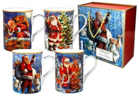 Na świąteczny stół... Na upominek pod choinkę... ...komplet czterech, różnych kubków wykonanych z bardzo dobrej jakości, połyskującej porcelany, wchodzący w skład kolekcji Carmani - Merry ChristmasKubki o tradycyjnym, prostym kształcie i wyraźnym, bez złoceń, kolorowym świątecznym motywie z …
