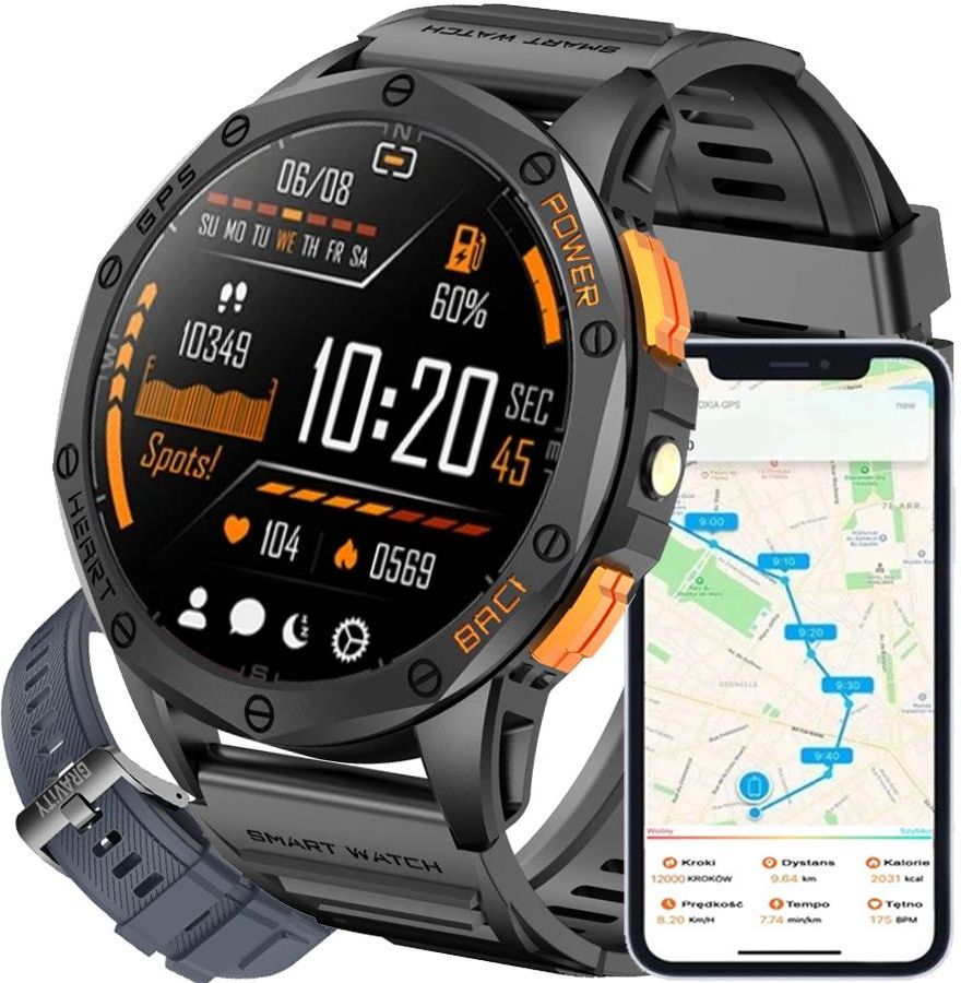 Zegarek męski SMARTWATCH GRAVITY GT24-1 BK/BK/BK Zegarek SMARTWATCH GRAVITY Najnowszy Smartwatch od producenta marki Gravity. Koperta wykonana została z tworzywa sztucznego. Smartwatch o stylu sportowym sprawdzi się nie tylko podczas różnego rodzaju aktywności fizycznej, ale również na co dzień, a nawet na specjalne okazje. Po połączeniu zegarka z telefonem za pomocą aplikacji "GloryFitPro" możesz natychmiast przeczytać powiadomienia z komunikatorów, bez konieczności wyjmowania telefonu z kieszeni. Zegarek może być sparowany z systemami: Android 4.4 i nowszymi, iPhone: iOS 8.0 i nowszymi. Wodoszczelność klasy IP67 oznacza, że bez obaw możemy myć w nim ręce, natomiast nie jest przeznaczony do pływania. Funkcje Rozmowy przez BLUETOOTH! GPS - pokazuje dokładną lokalizację oraz trasę treningu ALWAYS DISPLAY Krokomierz, ilość spalonych kroków, przebyty dystans, spalone kalorie Monitor pracy serca Monitor poziomu tlenu we krwi Monitor snu Monitor stresu Asystent głosowy Ćwiczenie oddechowe Czas na świecie Tryby sportowe (bieganie, jazda na rowerze, spacer, skakanie, piłka nożna, badminton, koszykówka i wiele innych) Sterowanie muzyką Informacje o pogodzie Powiadomienia przychodzące Powiadomienia z aplikacji Wybudzanie ekranu za pomocą podniesienia nadgarstka Tryb wygaszacza ekranu Jasność ekranu Czas podświetlenia ekranu Wybór motywu Wysokościomierz barometryczny Kompas Latarka Wybór tarczy Bliblioteka tarcz + możliwość wgrania własnego zdjęcia Stoper, budzik, alarm, kalkulator Znajdź mój smartwatch/ telefon Tryb nie przeszkadzać Przypomnienie o ruchu, piciu wody, zażyciu leków Funkcja robienia zdjęć za pomocą zegarka Tryb oszczędzania energii Rodzaj wibracji (silne, słabe, brak) Wybór języka Hasło Pasek/bransoleta: 2 paski z tworzywa sztucznego. Koperta: Tworzywo sztuczne. Ekran: Wysokiej jakości w pełni dotykowy. Wymiary: koperta: szer. 51 mm, wys. 55 mm, gr. 15 mmszer. paska przy mocowaniu: 22 mmmaks. zapięcie: ok. 22 cm Wodoszczelność: IP67 - odporny na zachlapania. Kolorystyka: Koperta: kolor czarny,Pasek: kolor czarny i granatowy. Specyfikacja - Menu i aplikacja w języku polskim ! - Wyświetlacz MULTIdotyk TFT IPS full round display! 1.43” - W pełni dotykowy ekran - Tryb ładowania: ładowanie magnetyczne - Wysoka rozdzielczość: 466*466 pikseli - dobra widoczność w słońcu - Bluetooth Call ! wbudowany mikrofon i głośnik ! - Odbieranie i wykonywanie połączeń - Tarcza: motywy do wyboru + dodatkowe tarcze z poziomu aplikacji + możliwość ustawienia zdjęcia z własnej galerii w telefonie - GPS: BCM47755 - Układ główny: ATS3085L - Energooszczędny Bluetooth Chip wersja 5.3 - Wodoszczelność: IP67 - Materiał koperty: tworzywo sztuczne - Materiał paska: 2 paski z tworzywa sztucznego - Pamięć 256 MB - Super Bateria: 530 mAh ! Normalny czas pracy 5-10 dni, czuwania do 40 dni - Współpraca z oprogramowaniem iOS i Android - Kolor: czarny ( koperta ) czarny i granatowy (pasek) - Wymiary koperty: szer. 51 mm, wys. 55 mm, gr. 15 mm Szerokość mocowania: 22 mm Szerokość paska: 22 mm Obwód maksymalny: ok. 22 cm Długość paska część z zapinką: 93 mm Długość paska część z dziurkami: 130 mm Co jest w zestawie? Oryginalny zegarek smartwatch GRAVITY Instrukcja w języku polskim Kabel magnetyczny USB Firmowe pudełko GRAVITY Połączenia i rozmowy Użytkownik może wykonywać połączenia telefoniczne bezpośrednio z zegarka smartwatch, wybierając numer telefonu lub korzystając z listy kontaktów zapisanych w zegarku lub sparowanych z telefonem. Powiadomienia Po sparowaniu urządzeń, możesz skonfigurować, które powiadomienia chcesz otrzymywać na zegarku smartwatch za pomocą dedykowanej aplikacji. Wybierz, które aplikacje mają wysyłać powiadomienia na zegarek smartwatch, a także jakie rodzaje powiadomień chcesz otrzymywać (np. wiadomości tekstowe, połączenia telefoniczne, e-maile, powiadomienia z mediów społecznościowych itp.). Po przeprowadzeniu tych kroków, będziesz otrzymywać powiadomienia z telefonu na zegarku smartwatch, co pozwoli Ci być na bieżąco nawet bez wyciągania telefonu z kieszeni. Pulsometr Pulsometr w zegarku smartwatch jest przydatną funkcją dla osób aktywnych fizycznie lub dbających o swoje zdrowie. Pozwala on monitorować puls (częstość akcji serca) podczas aktywności fizycznej oraz w spoczynku. Ciśnieniomierz Ciśnieniomierz w zegarku to funkcja, która umożliwia pomiar ciśnienia krwi bez konieczności korzystania z oddzielnego urządzenia. Ta innowacyjna funkcja umożliwia użytkownikom monitorowanie ich ciśnienia krwi w dowolnym miejscu i czasie, co może być szczególnie przydatne dla osób z nadciśnieniem tętniczym lub innych schorzeń układu sercowo-naczyniowego. Należy pamiętać, że pomiar ciśnienia krwi za pomocą zegarka może być mniej dokładny niż za pomocą specjalistycznego urządzenia medycznego. Jednak to może pomóc w szybkim reagowaniu na potencjalne zagrożenia dla zdrowia. GPS Smartwatch posiada system nawigacyjny GPS. Umożliwi on precyzyjne zmierzenie przebytej odległości, prędkości oraz obliczenie tempa. Wszystkie te dane zapisywane są w dedykowanej aplikacji DaFit. Po zakończonym treningu, spacerze, biegu lub jazdy na rowerze w aplikacji będziemy mogli odczytać dokładnie przebytą trasę. Barometr Barometr w smartwatchu to czujnik, który mierzy ciśnienie atmosferyczne. Jego główną funkcją jest dostarczanie informacji o zmianach pogody oraz wysokości n.p.m. (nad poziomem morza). Jest szczególnie przydatny dla osób uprawiających sporty na świeżym powietrzu, takie jak wspinaczka, trekking, bieganie czy jazda na rowerze. Kompas – wybierz swój kierunek za pomocą zegarka Smartwatch z kompasem to nie tylko praktyczne narzędzie orientacyjne, ale również stylowy dodatek dla osób aktywnych. Idealny dla osób podróżujących, zwłaszcza tych, którzy eksplorują tereny górskie, lasy czy i