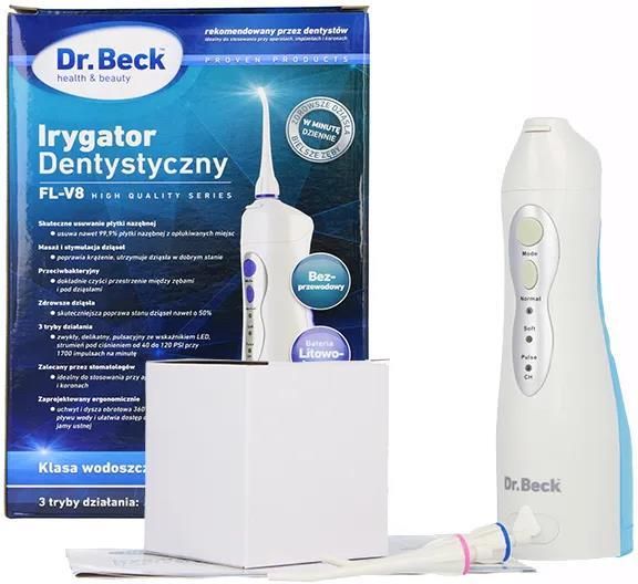 Produkt Dr. Beck FL-V8, irygator dentystyczny, Skyblue + 2 końcówki do kupienia w Gemini. Irygator to idealne rozwiązanie dla wszystkich, którzy chcą prawidłowo dbać o higienę jamy ustnej i zaoszczędzić pieniądze na dentystę. ...