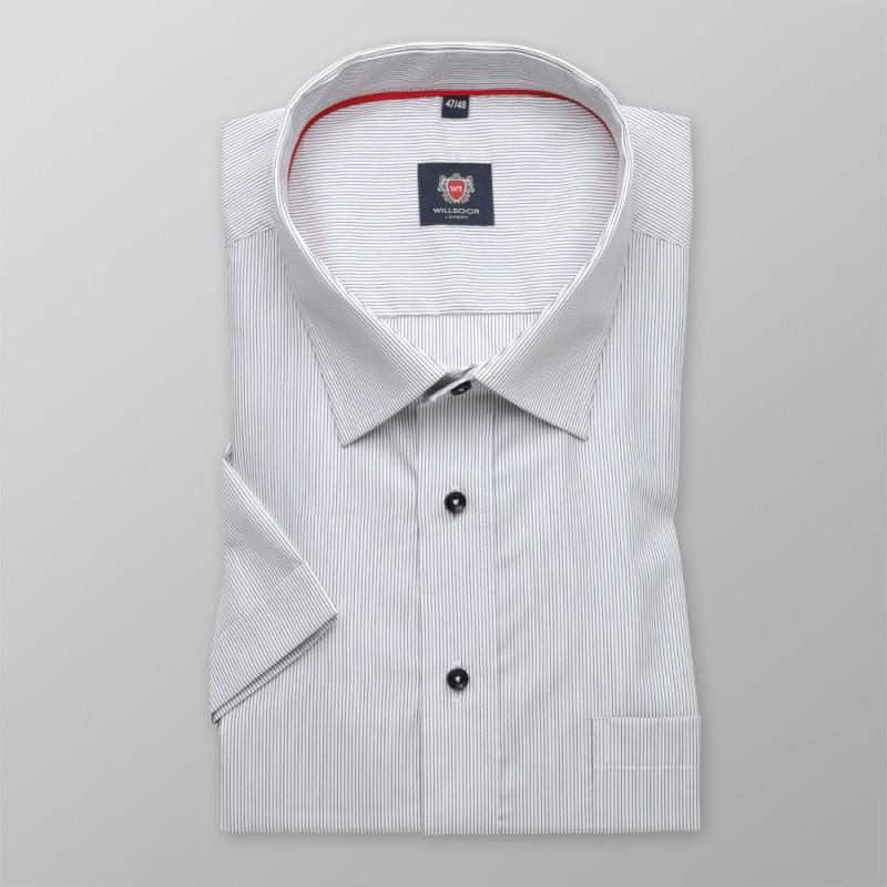 Klasyczna biała koszula w szare prążki z krótkim rękawem i kołnierzykiem KENT, formuła Easy Care