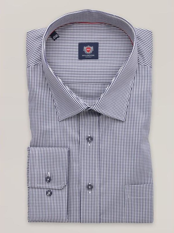 Klasyczna koszula w drobną, granatowo-białą kratkę z kołnierzykiem KENT, 100% bawełna