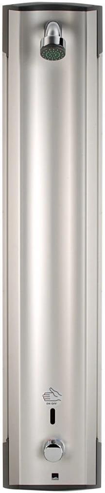 ELECTRA Panel prysznicowy ???? Bezdotykowy, termostatyczny panel prysznicowy z pokrętłem temperatury. Panel zasilany jest 12 V prądem elektrycznym z oddzielnego transformatora 199275 (max 4 panele natryskowe mogą być podłączone do transformatora). Pojawienie się ręki w zasięgu sensora powoduje uruchomienie prysznica. Odejście spod prysznica powoduje automatyczne zamknięcie wypływu wody. Panel natryskowy wyposażony jest w filtry siatkowe, zawory zwrotne, kontroler przepływu oraz przewód zasilający do transformatora (10m). Prametry są zmieniane za pomocą magnetycznego klucza, załączonego do zestawu. Wyposażenie dodatkowe: mydelniczka (Oras nr 199880) i uchwyt (Oras nr 199881) są sprzedawane oddzielnie. Posiada: znak budowlany „B”, atest PZH, deklarację zgodności.