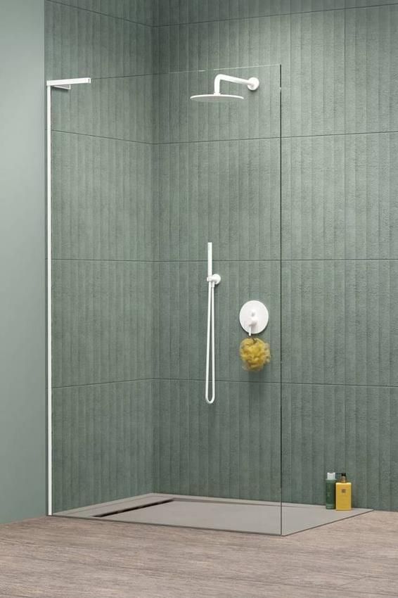 Biała kabina walki-in Radaway Modo SL White II o szerokości 65 cm ze stabilizatorem kątowym L. Kabina z białym profilem przyściennym i szybą z powłoką Easy Clean. Szkło o grubości 8 mm, przejrzyste o wysokości 200 cm. Strona lewa. 10319065-04-01L