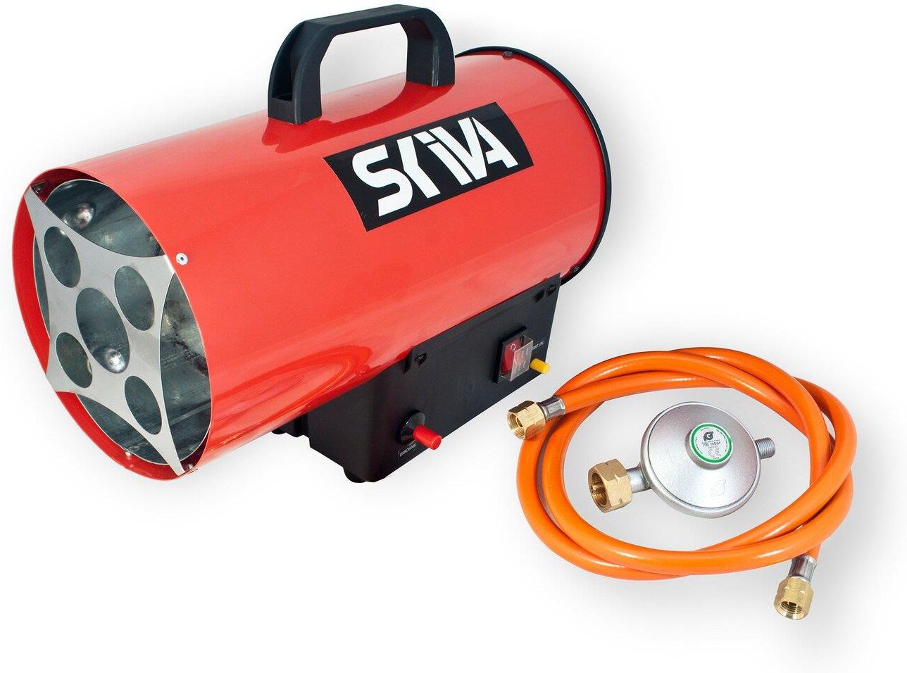 Nagrzewnice są urządzeniami służącymi do ogrzewania powietrza do odpowiedniej temperatury przy użyciu gazu płynnego lub energii elektrycznej. Urządzenia te w szybkim tempie nagrzewają powietrze przepływające przez nagrzewnicę, które za pomocą wentylatora rozprowadzane jest po całym pomieszczeniu. Należy pamiętać o prawidłowej wentylacji pomieszczeń. Przenośne nagrzewnice powietrza bez odprowadzania spalin. Nagrzewnice zapewniają natychmiastowe ogrzewanie wszędzie tam, gdzie potrzebujesz tego najbardziej. Znajdują szerokie zastosowanie na budowach, w szklarniach i tunelach foliowych oraz budynkach inwentarskich, tam gdzie jest zapewniona prawidłowa wentylacja pomieszczeń. Służą również do suszenia i rozmrażania oraz utrzymywania dodatnich temperatur w przypadku takich wymagań. Stanowią źródło dwutlenku węgla niezbędnego w procesie długotrwałego przechowywania produktów roślinnych. Są niezwykle uniwersalnymi urządzeniami o łatwiej obsłudze i wysokim poziomie bezpieczeństwa użytkowania. Wyposażono je w system wyłączający urządzenie w przypadku jakiejkolwiek awarii. Zabezpieczenie przed przegrzaniem Zabezpieczenie wypływu gazu Klasa szczelności: IP44 Zapalarka piezoelektryczna Rączka do przenoszenia Reduktor i wąż w komplecie