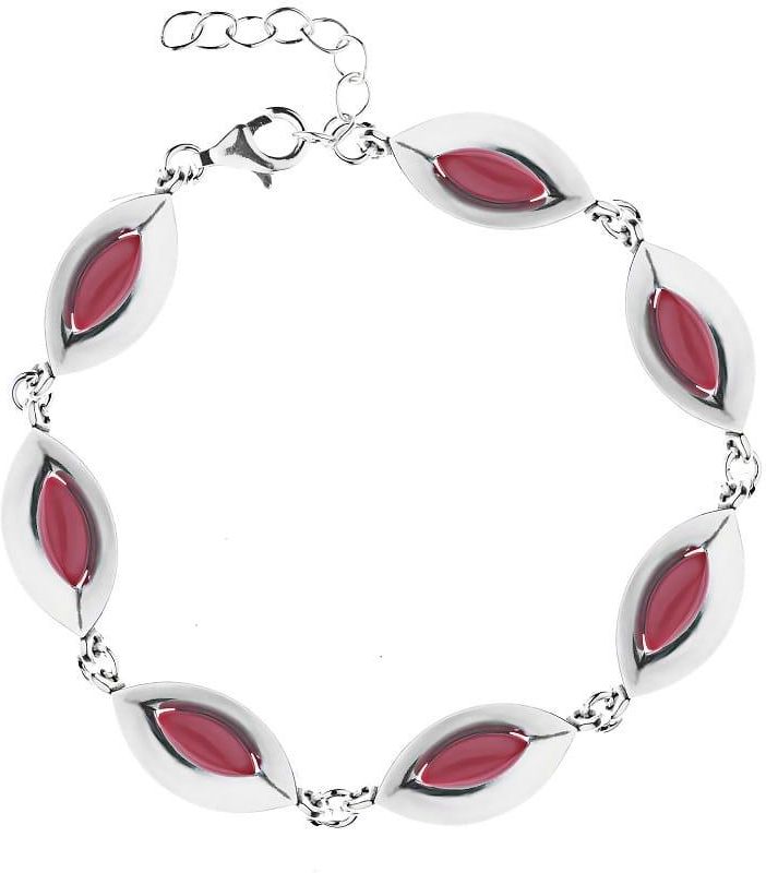 Ta wyjątkowa bransoletka łączy w sobie nowoczesny design z klasyczną elegancją. Wykonana z najwyższej jakości srebra próby 925, zachwyca delikatnością i starannością wykonania. Gładkie, owalne ogniwa z czerwonym kamieniem tworzą harmonijną całość – kamień o głębokiej, nasyconej barwie przyciąga wzrok i subtelnie podkreśla nadgarstek. Bransoletka posiada wygodne zapięcie na karabińczyk oraz praktyczną przedłużkę, która pozwala dopasować długość do indywidualnych preferencji. Czerwony koral symbolizuje pasję, energię i siłę – dzięki czemu ta bransoletka nie tylko zdobi, ale również dodaje pewności siebie. Doskonały wybór zarówno na co dzień, jak i na specjalne okazje – dla kobiet, które cenią sobie wyraziste dodatki z duszą. Bransoletka jest również bardzo łatwa w pielęgnacji - wystarczy przetrzeć ją miękką szmatką, by odzyskała swój blask. Srebrna bransoletka z czerwonymi kamieniami to doskonały wybór na prezent dla bliskiej osoby lub na uzupełnienie swojej kolekcji biżuterii. Nie wahaj się dłużej i dodaj ją do swojego koszyka już dziś! Poznaj nasze pozostałe produkty z tej kolekcji i stwórz idealny zestaw! Zabłyśnij z biżuterią Susetti!