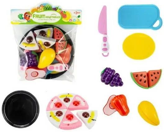 Smakowite Kolorowe Ciasteczka i Owoce Atrakcyjny zestaw deserowy, który zawiera kolorowe i apetyczne ciastka oraz owoce do krojenia. Każdy element jest wykonany z dbałością o szczegóły, co sprawia, że zabawa w kucharza staje się jeszcze bardziej realistyczna. Wszystko, czego potrzebujesz Zestaw zawiera nóż, deskę do krojenia, talerz oraz paterę. Owoce są ze sobą połączone za pomocą rzep, co umożliwia wielokrotne krojenie i łączenie. Praktyczne opakowanie Całość jest starannie zapakowana w foliowy worek, co ułatwia przechowywanie i transport. Podane wymiary dotyczą wielkości opakowania. EAN: 5902496190584