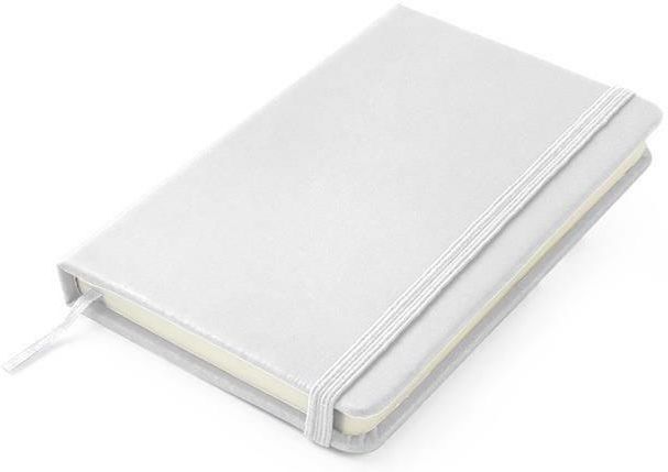Gustowny notes A6 z kolorową gumką wykonany z ekoskóry PU. Notes zawiera 80 kartek ecru w linie koloru pomarańczowego. Logo nadrukujemy na okładce.