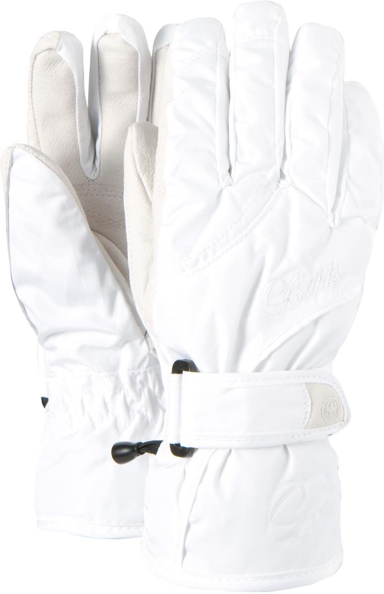 Rękawiczki damskie, narciarskie renomowanej holenderskiej firmy akcesoryjnej Barts. Materiał zewnętrzny jest nieprzemakalny. Posiadają wewnętrzną membranę HYDROSHELL II Oddychalność: 7.000 g/m2/24 godziny Nieprzemakalność: 8.000 mm H2O. Wewnątrz wykonane są z materiału BEMBERG SOFT LINING, jest to bardzo miękki materiał używany jako podszewka. Ma dobre właściwości oddychające i absorbujące wilgoć (pot). Część chwytna pokryta wyłożona naturalną skórą. Rękawiczki posiadają klips który łączy obie rękawiczki w celu nie zgubienia. W nadgarstku ściągacz dociskający. Rozmiar S.