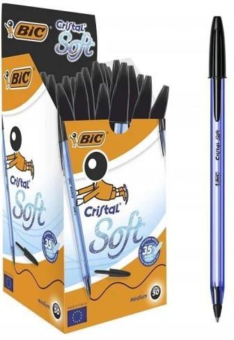 BIC Cristal Soft długopis czarny pudełko 50 sztuk Bezpieczna skuwka z otworem umożliwiającym oddychanie Posiada certyfikat NF Environnement Atrament na bazie oleju - trwały, wodoodporny, szybkoschnący cena za 1szt SZCZEGÓŁY Oferowany długopis BIC Cristal Soft z końcówką 1,2 mm powstał z myślą o …