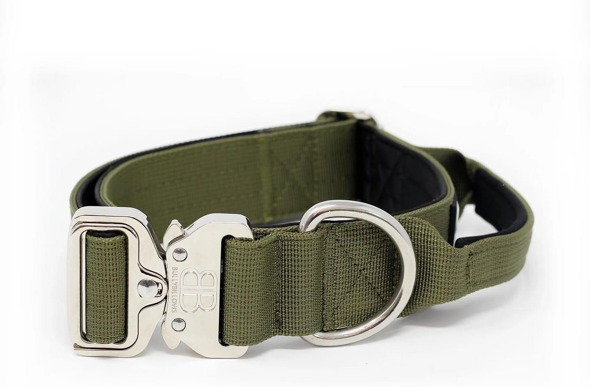 4cm Combat® Collar With Handle PLATINUM BULLYBILLOWS obroża dla psa z uchwytem khaki Obroża bojowa BullyBillows jest wyposażona w potrójnie szyty nylon, bezpieczną 6-milimetrową pętlę D ze stali nierdzewnej oraz specjalnie wykonany klips do szybkiego odpinania i zapinania. Aby zapewnić najwyższą …