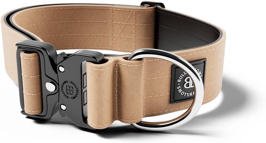 5cm Combat® Collar BULLYBILLOWS obroża dla psa z klamrą beżowa Obroża bojowa BullyBillows jest wyposażona w potrójnie szyty nylon, bezpieczną 6-milimetrową pętlę D ze stali nierdzewnej oraz specjalnie wykonany klips do szybkiego odpinania i zapinania. Obszyta wygodnym neoprenem wewnątrz obroży dla …