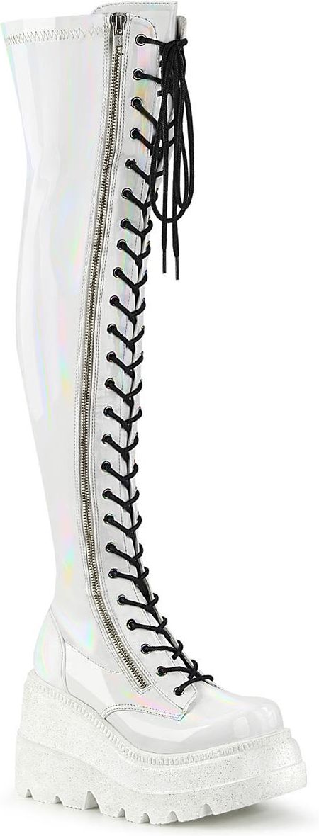4 1/2 (114mm) Wedge Platform Lace-Up Stretch Thigh-High Boot, Full Length Outside Metal Zipper