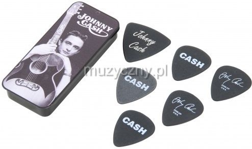 Dunlop JCPT01 M Johnny Cash był jednym z tych gitarzystów, którzy mieli ogromny wpływ na dalszy rozwój muzyki gitarowej. Firma Dunlop postanowiła oddać hołd temu wspaniałemu muzykowi i wyprodukowała kolekcjonerski zestaw kostek do gitary. W zestawie znajdziemy 6 kostek o rozmiarze medium, jedna z nich jest wierna repliką ulubionej kostki Johnnego. Całość sprzedawana jest w bardzo stylowym, metalowym pudełku. Zestaw 6 kostek gitarowych Rozmiar: medium (średnie) Stylowe, blaszane pudełko Wyprodukowane w USA