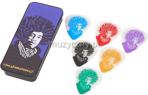 Grubość plektronu: 1 mm, Materiał: Celuloid, Liczba sztuk: 6, Kolor: Grafika, Motyw: Jimi Hendrix, Kraj pochodzenia: Stany Zjednoczone,