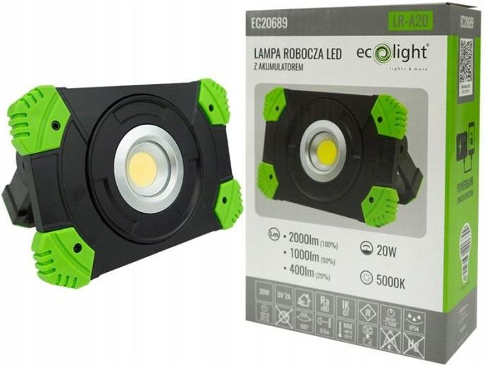 Ecolight Halogen Led Naświetlacz Budowlany Akumulatorowy 20W 5000K Przenośny Kabel Nowy Dwór Mazowiecki