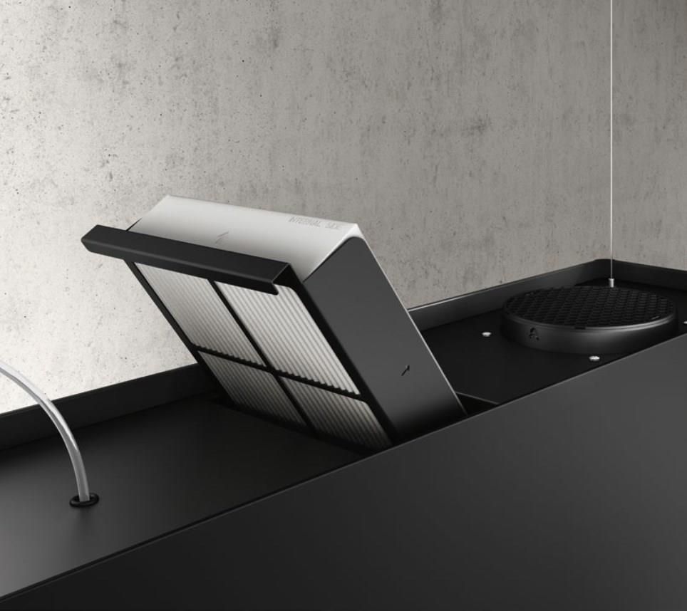 KIT0176157 KIT0176157  Filtr Hepa-węglowy  do okapu  Ikona Maxxi Pure Specjalny filtr Combo Pure, będący połączeniem filtrów Hepa i węglowego, wychwytuje  zanieczyszczenia, uwalniając w ten sposób strefę dzienną od zapachów i alergenów, takich jak kurz, sierść zwierząt domowych, pyłki, pleśń i szkodliwe pozostałości po detergentach, farbach i  powłokach okładzinowych. Aby utrzymać skuteczne oczyszczanie powietrza, należy wymieniać  filtr mniej więcej raz w roku. Ikona Maxxi Pure przypomni Ci o konieczności wymiany poprzez alert  na interfejsie użytkownika, zapewniając w ten sposób zawsze zdrowe powietrze.