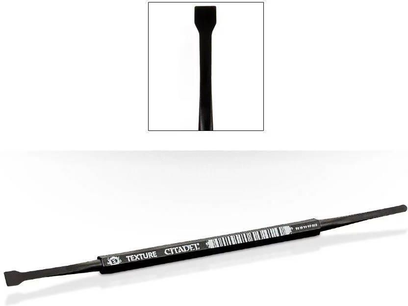 Narzędzie marki Citadel służące do wygodnego nakładania farb z serii texture. Opis ze strony producenta: Designed to be used with the Citadel Texture range of paints, this texture spreading tool (M Texture) places detailed, interesting bases within easy reach for your miniatures. The double-ended tool is ideal for applying textures to any and all Citadel Bases.