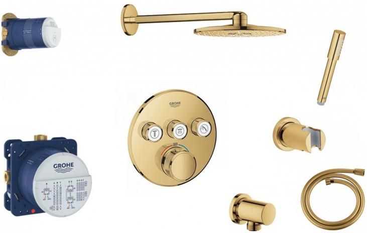 Grohe kompletny system podtynkowy SmartControl w wykończeniu Cool Sunrise Elementy składowe bateria termostatyczna do obsługi trzech wyjść wody Grohtherm SmartControl (29 121 GL0) element podtynkowy Rapido SmartBox (35 600 000) Rainshower 310 SmartActive zestaw prysznicowy (26 475 GL0) zawierający …