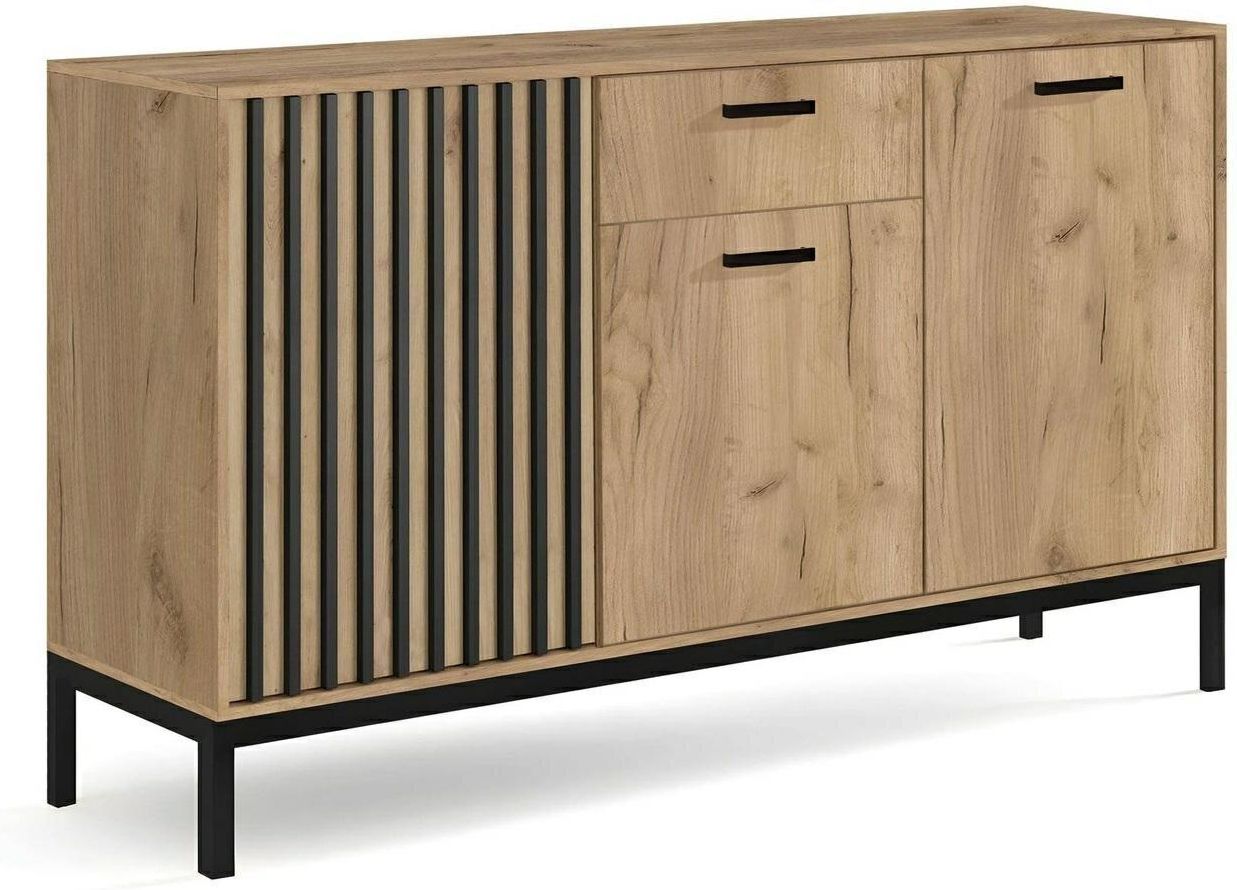 Nowoczesna komoda z kolekcji Markle! Komoda Markle w kolorze dąb craft/czarny to wyjątkowy element wyposażenia wnętrz, łączący w sobie elegancję z funkcjonalnością. Wykonana z wysokiej jakości płyty laminowanej o ciepłym odcieniu dębu craft, komoda ta wnosi do pomieszczenia naturalne piękno, które idealnie komponuje się z różnymi stylami aranżacji. Czarne lamelowe dekory na niektórych frontach dodają nowoczesnego charakteru, co sprawia, że komoda staje się nie tylko praktycznym meblem do przechowywania, ale także dekoracyjnym akcentem we wnętrzu. Przemyślana konstrukcja komody Markle zapewnia dużą pojemność, umożliwiając wygodne przechowywanie różnorodnych przedmiotów, od ubrań po dokumenty i akcesoria. Jej szerokość i odpowiednia głębokość sprawiają, że jest to mebel, który doskonale sprawdzi się zarówno w salonie, sypialni, jak i w przedpokoju. Ciepły odcień drewna w połączeniu z czarnymi akcentami tworzy harmonijną całość, która przyciąga wzrok i nadaje pomieszczeniu elegancji. Komoda Markle to także mebel, który łatwo wkomponować w istniejące już aranżacje. Dzięki nowoczesnemu designowi i wysokiej jakości wykonania, będzie służyć przez wiele lat, zachowując swój atrakcyjny wygląd. Łatwość konserwacji i odporność na zarysowania czynią ją praktycznym wyborem dla osób ceniących zarówno estetykę, jak i trwałość mebli w swoim domu. Co musisz wiedzieć przed zakupem? Ciepły odcień dębu craft w połączeniu z czarnymi lamelami na frontach dodaje komodzie Markle wyjątkowego uroku i nowoczesnego charakteru Dzięki przestronnym półkom i szufladom, komoda Markle zapewnia dużo miejsca na przechowywanie różnych przedmiotów Wykonana z wysokiej jakości płyty laminowanej, komoda jest odporna na zarysowania i łatwa w utrzymaniu czystości