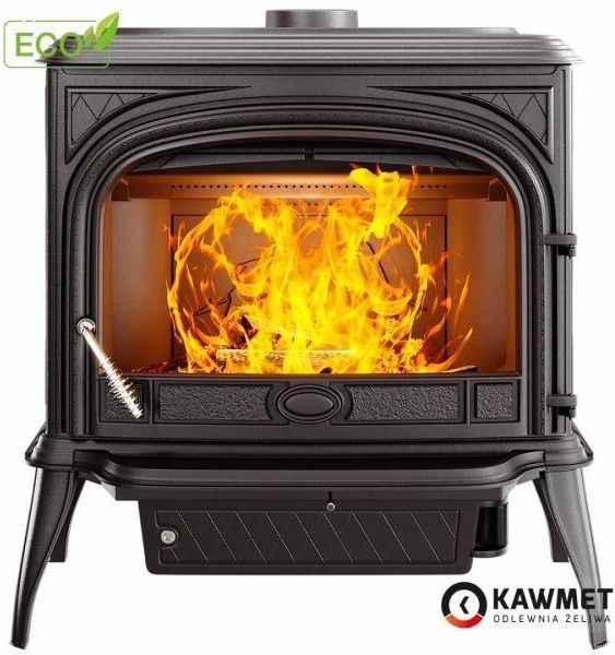 Kawmet Piec żeliwny wolnostojący Premium NIKA S5 ECO Żeliwo – materiał doskonały Żeliwo od dawna uznawane jest za najbardziej sprawdzony materiał, jeśli chodzi o budowę urządzeń grzewczych. Produkcja odlewów nie należy do najtańszych, ale niesie za sobą wiele zalet: żeliwo jest bardziej odporne i trwalsze od blachy stalowej. Dodatkowo lepiej znosi wysokie temperatury, nie odkształca się i nie występują w nim naprężenia często występujące w tanich stalowych wersjach. Kawmet Piec żeliwny wolnostojący Premium NIKA S5 ECO to piec, których główne to zgodność z wymogami ekoprojektu, doskonały design oraz duża moc. Kawmet Piec żeliwny wolnostojący Premium NIKA S5 ECO Piec wolnostojący wykonany jest z wysokiej jakości żeliwa wermikularnego, co zwiększa przewodność cieplną o 30% i zmniejsza zużycie drewna o 30%. Piec żeliwny wolnostojący posiada żaroodporne szkło Robax, które wytrzymuje temperatury do 800°C. Posiada system czystej szyby. Piec wolnostojący koza zawiera wbudowany deflektor, który znacznie zwiększa efektywność jego pracy. Przepływ powietrza regulowany jest przez popielnik. _______________________________________________________________________________________________________________ Dzięki podwójnej komorze spalania piec na drewno KAWMET Premium umożliwia kontrolę i regulację dopływu powietrza, co gwarantuje maksymalną wydajność. Zgodność pieców KAWMET PREMIUM z Ekoprojektem W związku z zastosowaniem żeliwa wermikularnego, piece wolnostojące KAWMET PREMIUM spełniają normy Ekoprojektu : 30% mocniejsze niż zwykłe piece żeliwne; zmniejszają emisję CO, ciał stałych i substancji organicznych poprzez poprawę jakości powietrza i środowiska dzięki mniejszemu zapotrzebowaniu na drewno; około 30% szybciej ogrzewają pomieszczenie dzięki zwiększonej przewodności cieplnej; 35% mniejsze zapotrzebowanie na paliwo, a tym samym oszczędność drewna podczas użytkowania. Czym jest projekt ekologiczny i jego zastosowanie w pieców na drewno? Ekoprojekt — to dyrektywa Parlamentu Europejskiego w sprawie wymagań energetycznych i emisji dla urządzeń grzewczych. Ma na celu: zwiększenie wykorzystania energii odnawialnej w UE; zmniejszenie zużycia energii; ograniczenie emisji gazów cieplarnianych. Oznacza to, że jej celem jest jak najczystsze powietrze i oszczędzanie zasobów energetycznych Ziemi. Parametry określone w Ekoprojecie dla wkładów kominkowych i pieców opalanych drewnem obejmują: Sezonową efektywność energetyczna wynoszącą nie mniej niż 65%. Emisję produktów spalania przy mocy znamionowej (w przeliczeniu na 13% tlenu) dla: cząstki stałe nie więcej niż 40 mg / Nm3; organiczne związki gazowe nie więcej niż 120 mg/Nm3; tlenek węgla nie więcej niż 1500 mg/Nm3; tlenek azotu nie więcej niż 200 mg/Nm3. Wszystkie piece wolnostojące KAWMET PREMIUM spełniają normy Ekoprojektu, co potwierdzają odpowiednie certyfikaty.