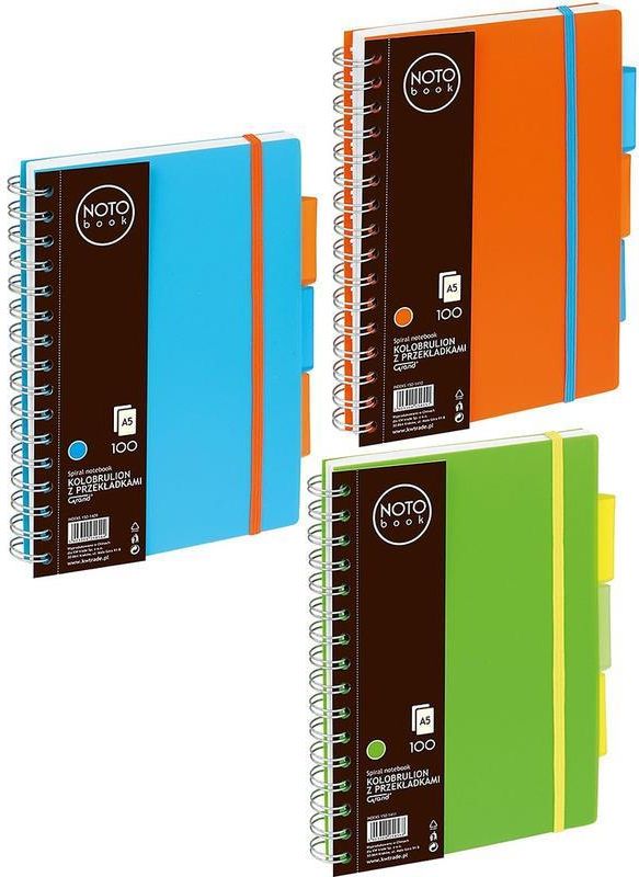 polipropylenowa okadka i kolorowe przekadki indeksujce podwjna metalowa spirala liniatura: kratka 100 kartek 3 przekadki format A5 gramatura 80 g/m2