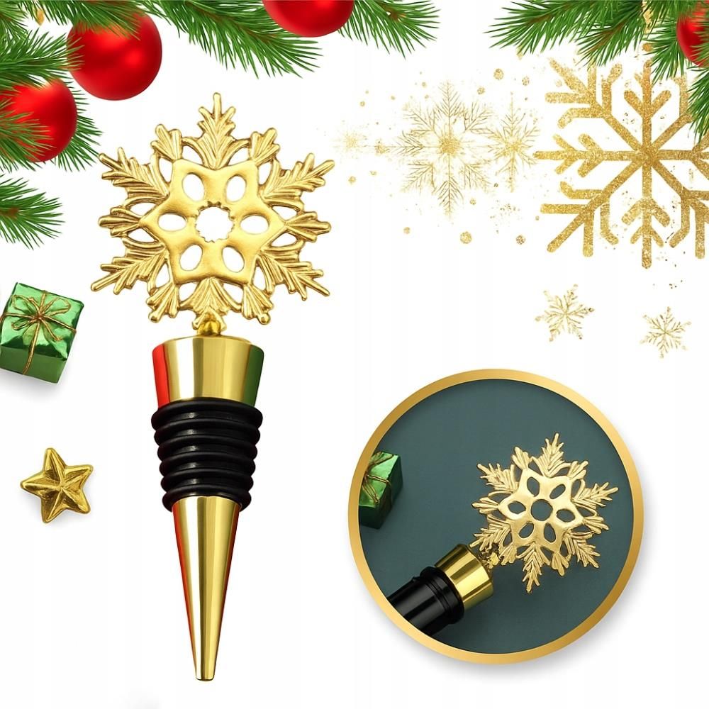 • Korek Zatyczka Do Wina Świąteczna Śnieżynka TSG-63 Gold BOŻE NARODZENIE