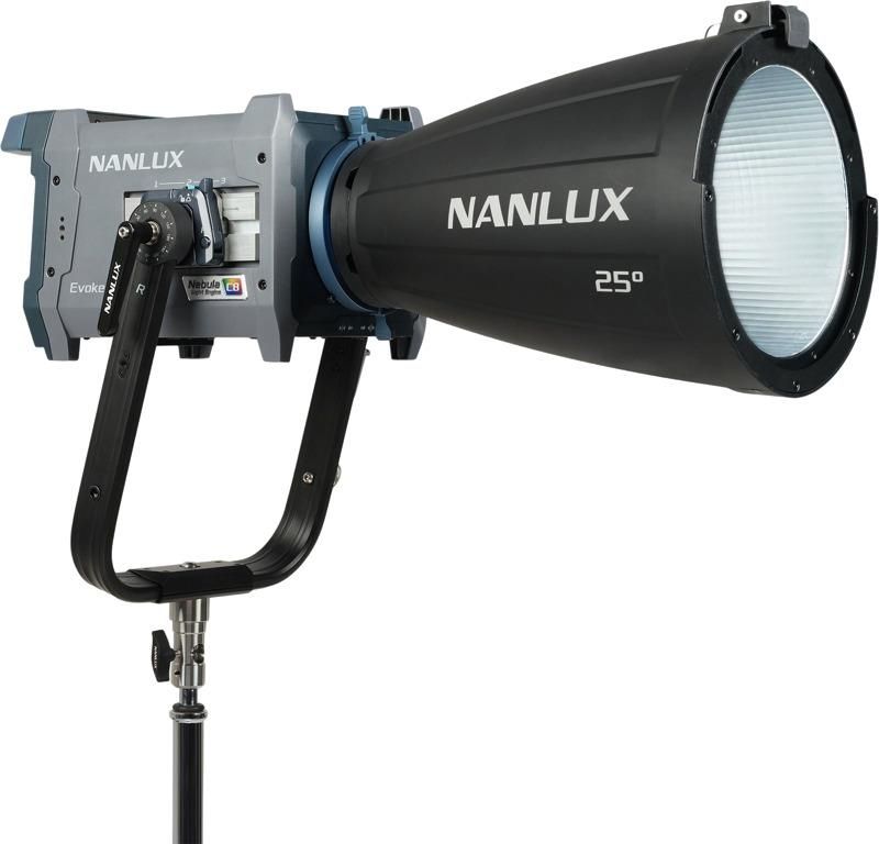 Evoke 600C to potężne, wszechstronne i niezawodne, pełnokolorowe źródło światła punktowego zaprojektowane do profesjonalnej produkcji. Wyposażony w silnik świetlny Nebula C8 Color Light Engine, Evoke 600C oferuje ultrazaszeroki zakres temperatury barwowej 1 000–20 000 K i znakomitą reprodukcję kolorów. Zintegrowana konstrukcja w lekkiej i trwałej obudowie ze stopu magnezu zapewnia kompaktowy rozmiar i niską wagę. Dzięki ochronie IP66 może pracować w ekstremalnych warunkach. Kontynuując tradycję serii Evoke – wysoką moc i doskonałą jakość światła – model 600C dostarcza równie jasnego światła białego, jak i kolorowego. Uchwyt BE jest kompatybilny z akcesoriami Bowens, a dzięki adapterowi NL→BE umożliwia użycie akcesoriów NL, oferując jeszcze szersze możliwości kształtowania światła. Wyjątkowa Jakość Światła · Potężne Kolory Wybitna iluminacja – białe i kolorowe światło Mocne oświetlenie planu zapewnia twórcom pełne wsparcie. Evoke 600C utrzymuje znakomite parametry jasności serii, oferując potężne i wysokiej jakości światło białe i kolorowe. Może być światłem kluczowym w mniejszych setupach lub światłem wypełniającym w większych scenach, kształtując zróżnicowane efekty i atmosferę. 20 820 lx @ 3 m (z reflektorem, 5600 K) 11 110 lx @ 3 m (z reflektorem, kolor zielony) Silnik Nebula C8 Color Light Engine Silnik Nebula C8 łączy osiem barw (czerwień głęboka, czerwień, bursztyn, limonka, zieleń, cyjan, niebieski, indygo), zapewniając szerszy zakres temperatur barwowych, bardziej nasycone kolory i wyższą wierność odwzorowania barw. Zakres CCT: 1 000–20 000 K (G/M ±200) 79 % pokrycia przestrzeni barw CIE 1931 O 3 % większe pokrycie gamutu widzialnego niż Rec. 2020 92 % pokrycia przestrzeni Rec. 2020 Średnie wskaźniki jakości światła: CRI 96 | TLCI 97 | TM-30 Rf 96 | TM-30 Rg 100 SSI (3200 K) 86 | SSI (5600 K) 78 Dodanie głębokiej czerwieni zwiększa pokrycie spektrum czerwieni, zapewniając bogatsze, bardziej naturalne odcienie skóry. Różne Tryby Świecenia Evoke 600C ma sześć wbudowanych trybów z pełną regulacją parametrów: CCT: 1 000–20 000 K, ±200 G/M w całym zakresie. HSI: 360 odcieni, 100 % nasycenia. RGBW: Niezależne sterowanie kanałami R, G, B, W. XY: Precyzyjne sterowanie barwą poprzez współrzędne CIE 1931. Filtry (Gel): 230 filtrów LEE i 230 Rosco. Efekty: 15 dynamicznych efektów z regulacją parametrów. Lepsze Ściemnianie Ultra-precyzyjne ściemnianie co 0,1 %, stabilne także na niskim poziomie. Płynne przejścia fade-in/fade-out. All-in-One · Kompaktowy i Niezawodny Zintegrowana konstrukcja lampy, jednostki sterującej i zasilacza w jednej obudowie – gotowość do pracy po podłączeniu jednego kabla. Obudowa ze stopu magnezu zapewnia wytrzymałość i redukcję wagi. Wymiary: 358,2 × 246,3 × 205,33 mm (14,10 × 9,70 × 8,08") Waga: 7,26 kg (16,01 lb) IP66: odporność na kurz, piasek i ulewny deszcz. Kompatybilność Akcesoriów Nowy uchwyt BE (z kontaktami elektronicznymi): obsługuje akcesoria BE, ekosystem Bowens i akcesoria NL przez adapter NL→BE*. Możliwość zasilania z baterii V-mount przez opcjonalną Power Station* (mobilne zdjęcia). Z opcjonalnym uchwytem obrotowym Motorized Yoke* możliwa zdalna regulacja tilt/pan na wysokości. *w opracowaniu Dopracowany Design Port rozszerzeń do sterowania i komunikacji z akcesoriami. Zintegrowane wejście AC/DC (AC 100–240 V lub DC 48 V/12,5 A). System PosiTight w uchwycie BE – podwójne zabezpieczenie mocowania. Szyny do regulacji balansu, przesunięty jarzmo (offset yoke) dla większego zakresu pochylenia, podwójna blokada z kątomierzem, gwinty 1/4"-20 i 3/8" z zabezpieczeniem antyskrętnym. Wszechstronne Sterowanie Panel na lampie: wyświetlacz 2,4", 3 pokrętła, 4 przyciski. Przewodowy kontroler 8 m z ochroną IP66. Aplikacja Nanlink App 2.0 (Bluetooth). DMX/RDM (5-pin XLR). Wbudowany LumenRadio CRMX (bezprzewodowy DMX). Art-Net/sACN (opcjonalny adapter LAN). Opcjonalny pilot WS-RC-C2. NFC – szybkie parowanie i konfiguracja nawet przy wyłączonym zasilaniu. Linia Evoke Z Evoke 600C linia obejmuje już lampy dzienne, dwubarwowe i kolorowe do 5000 W. Ta sama logika obsługi, różne mocowania (FE, BE, NL) i pełny ekosystem akcesoriów. Metalowa konstrukcja z klasami IP do pracy w trudnych warunkach. Pełny Ekosystem Akcesoriów Nowy uchwyt BE z kontaktami elektronicznymi rozpoznaje akcesoria, koryguje dominanty barwne i zasila akcesoria z napędem. Lampa świeci również z akcesoriami bez kontaktów. Akcesoria BE (przykłady): Reflektor BE55 Parallel Beam* Przystawka projekcyjna BE* Fresnel 15°–50° z napędem (FL-22E) Kula dyfuzyjna BE 20 cm* Reflektor BE 25°/45 Adapter NL→BE* Akcesoria Bowens (przykłady): Soczewka Fresnel FL-20G Projekcja 19°/36° i 25°–45 Softboxy Rapid 90/120, Paraboliczne 90/120/150, Lantern 80/120, Strip 140×30 cm, Asymetryczny 110×45 cm Beauty Dish BDR-BM-40/70 Barndoor BD-BM-RF45 Reflektor Bowens 45 (* w opracowaniu) Wytrzymała Walizka Transportowa Opcjonalna walizka na kółkach CC-ST-EV600C z piankowymi przegrodami chroni lampę i akcesoria podczas transportu. Wysuwany uchwyt i trwałe kółka ułatwiają przenoszenie sprzętu. Zawartość Zestawu - Evoke 600C ×1 - Jarzmo ×1 - Reflektor BE 25° RF-BE-25 ×1 - Kabel zasilający AC 6 m ×1 - Pamięć USB ×1 - Podstawa magnetyczna AS-MB-2 ×1 - Kontroler przewodowy WC-EXT ×1 (kabel 8 m ×1, podstawa magnetyczna AS-MB-1 ×1) - Instrukcje obsługi ×2 (Evoke 600C + WC-EXT) - Walizka transportowa CC-ST-EV600C ×1 Specyfikacje: Model: Evoke 600C Rated Power: 600W Input Voltage/Current: AC100-240V/50-60Hz, 8A Max DC48V/12.5A Beam Angle: 65° LED Light Engine: Nebula C8 Light Engine: dRRALGCBI CCT: 1000K-20000K (G/M±200) CRI: Average 98 TLCI: Average 98 TM-30 Rf: Average 96 TM-30 Rg: Average 100 SSI (3200K): 86 SSI (5600K): 78 Dimming: 0.0%-100.0%, 0.1% increment IP Rating: IP66 Control: On-b