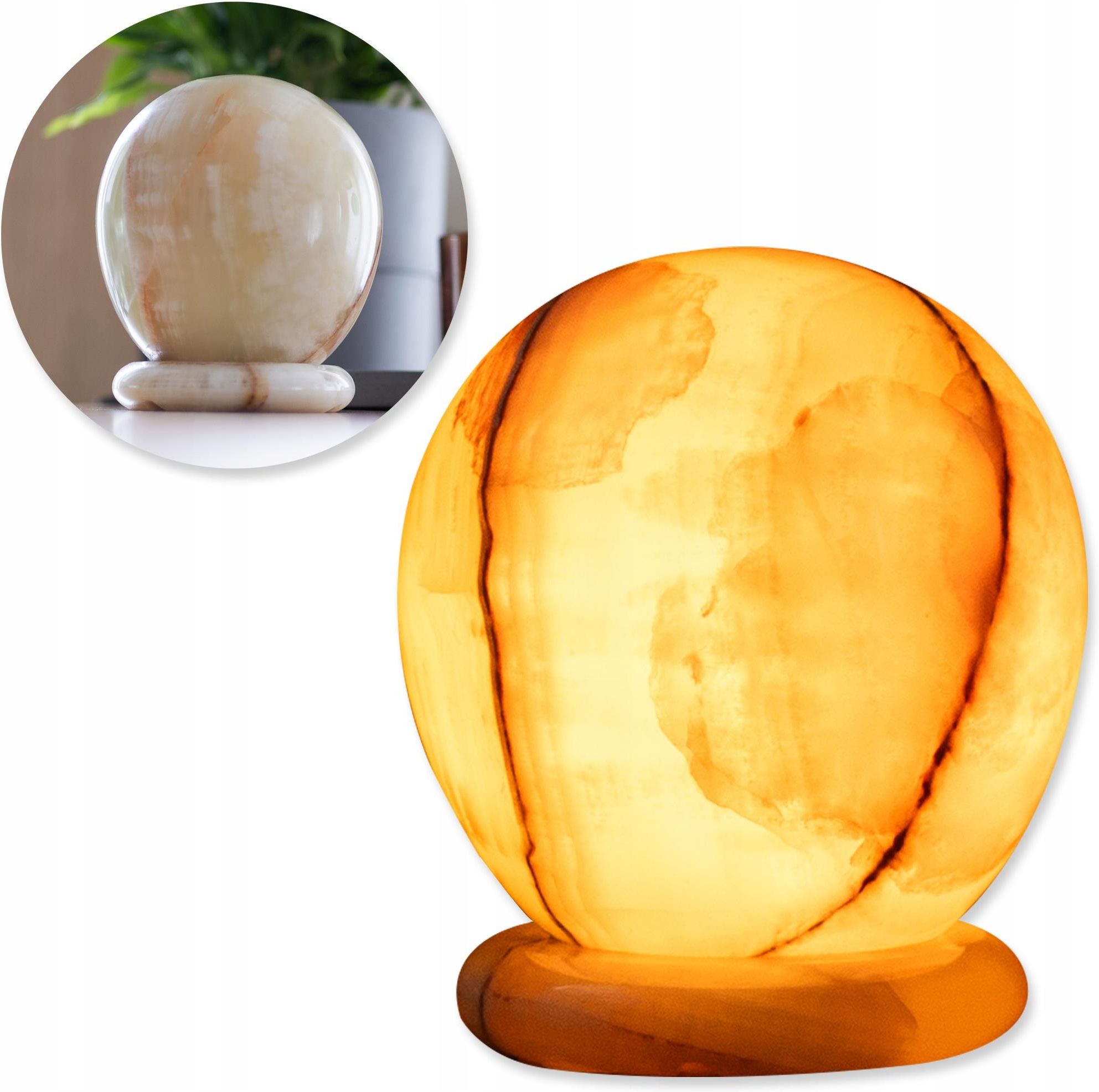 Lampa z kamienia naturalnego Informacje Wymiary: 18 x 15 x 13 cm (przybliżone) Waga: około 3,8 kg Materiał: kamień naturalny Zasilanie: sieciowe Długość kabla: m Kolor kabla: czarny Żarówka: w zestawie Kształt lampy: zbliżony do kuli Podstawka: na stałe przymocowana do lampy W podstawce jest specjalne wyżłobienie na kabel, dzięki czemu lampa stoi stabilnie Każda lampa jest inna, zdjęcia przedstawiają przykładowe lampy. Lampę wysyłamy losowo. Jak wykorzystać lampę z kamienia? Jako lampa ozdobna Dla stworzenia nastroju W pokoju dziecięcym Jako lampka nocna Na prezent Stwórz niezwykły nastrój Estetyka i dekoracja Onyks pakistański charakteryzuje się unikalnymi wzorami i naturalnymi barwami, co czyni każdą lampę niepowtarzalną ozdobą wnętrza. Jego subtelny, naturalny połysk dodaje elegancji i przytulności do pomieszczenia. Światło i atmosfera Kamień onyks pakistański ma właściwości lekko przepuszczające światło, co sprawia, że lampa staje się delikatnym źródłem oświetlenia, tworząc ciepłą i przyjemną atmosferę w pomieszczeniu. Relaksacja i medytacja Delikatne, rozproszone światło emanujące z lampy sprzyja relaksowi i medytacji. Onyks pakistański jest kojarzony z równowagą energetyczną i spokojem, co może pomóc w zanurzeniu się w głębokim stanie zamyślenia. Dobre samopoczucie Odpowiednia lampka nocna i jej kojące światło sprzyjają poprawie snu oraz wzmacnianiu psychicznej odporności na codzienne wyzwania. Odkryj Onyks pakistański Onyks pakistański to kamień równowagi: światła i ciemności, yin i yang. Pomaga w równoważeniu polaryzacji, przynosząc użytkownikowi siłę, pewność siebie i wytrzymałość, aby przetrwać trudne czasy. Sprzyja łagodzeniu wszelkich napięć. Pozwala złagodzić gniew, konflikty w domu i rozluźnić atmosferę. Uważa się, że gdy użytkownik uwolni się już od wszelkich negatywnych napięć, wtedy onyks przyniesie mu radość i szczęście. Ponadto, minerał ten wspomaga cierpliwość i obdarza optymizmem. Ze względu na jego kojącą, spokojną energię, jest polecany osobom narażonym na napięcia i stres. Ciekawostka: Onyks pakistański, onyks marmurowy – to nazwy komercyjne nadane ze względu na podobieństwo wizualne do tych kamieni (onyks i marmur). Tak naprawdę kamień ten to kalcyt lub rzadziej – aragonit.