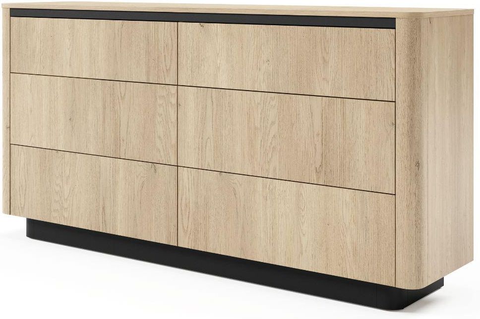 Komoda Torro D – 6 szuflad to idealne rozwiązanie dla osób ceniących styl japandi, prostotę i funkcjonalność. Mebel wykonany w dekorze dąb cremona z subtelnymi czarnymi akcentami łączy naturalne piękno drewna z nowoczesnym charakterem. Dzięki 6 pojemnym szufladom na prowadnicach kulkowych z pełnym …