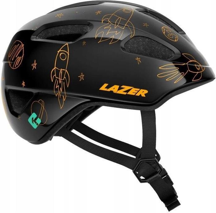 Kask rowerowy dla dzieci Lazer Pnut Flying Rocket KinetiCore BLC2227891150 Kask LAZER Pnut został zaprojektowany tak, by zapewniał najmłodszym rowerzystom najwyższy poziom ochrony i wygody, gdy podróżują w foteliku lub przyczepce albo w rowerze cargo. System EZ Fit z automatyczną regulacją poprawia dopasowanie kasku, a boczną klamrę opracowaną dla dzieci łatwo się odpina. Pnut zapewnia lepszą ochronę dzieciom podróżującym w fotelikach i przyczepkach rowerowych lub w rowerach cargo. Ma wbudowaną technologię ochrony KinetiCore oraz dodatkowe osłony skroni, aby chronić najbardziej wrażliwe obszary głowy dziecka przed udarami. Do tego system EZ Fit z automatyczną regulacją gwarantuje większą wygodę. Konstrukcja modelu Pnut z płaskim panelem tylnym jest przystosowana do fotelików dziecięcych. Nie powoduje popychania głowy dziecka do przodu, pozwalając mu podziwiać wspaniałe widoki i chłonąć dźwięki natury. Inteligentnie umiejscowiona boczna klamra ułatwia zdejmowania kasku i zapobiega bolesnym przyszczypnięciom skóry pod brodą. Dane techniczne System dopasowania: System EZ Fit Rozmiary: Rozmiar uniwersalny dla małych dzieci (46-52 cm) Waga: 240 g (CE) Liczba otworów wentylacyjnych: 12 otworów wentylacyjnych Kod producenta: BLC2227891150 Parametry Rozmiar Kasku: Dziecięcy