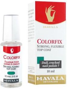 Utrwalacz lakieru MAVALA COLORFIX to transparentny utrwalacz lakieru wzmocniony akrylem, który po wyschnięciu tworzy twarde, elastyczne szkliwo zapewniając dodatkowy ochronny pancerz, który zabezpiecza lakier przed odpryskiwaniem i łuszczeniem. Sposób użycia: Na ostatnią wyschniętą warstwę koloru, nałożyć COLORFIX na całej powierzchni paznokcia i odrobinę pod jego końcówkę, aby skleił brzeg, na którym lakier odpryskuje najczęściej. Po 24 lub 48 godzinach nałożyć dodatkową warstwę COLORFIX, co odświeży manicure i przedłuży jego trwałość.