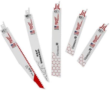 Milwaukee czyli znana i ceniona amerykańska marka produkująca narzędzia i elektronarzędzia najwyższej klasy. Produkty Milwaukee cechuje solidne i trwałe wykonanie jak i bardzo zaawansowana technologia. ----------------------------------------- Zestaw zawiera: 1 x AX™ do drewna z gwoździami - 230 mm x 5 Tpi (48005026), 1 x WRECKER™ multi material - 230 mm x 8 Tpi (48005706), 1 x TORCH™ do metalu - 230 mm x 14 TPi (48005787), 1 x TORCH™ do metalu - 150 mm x 14 TPi (48005782) 1 x TORCH™ do metalu - 150 mm x 18 TPi (48005784)