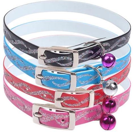 Wymiary: W1.0*L23-28cm Kolor produktu: Mieszanka 4 kolorów Dla: Kota Materiał wykonania: PP Materiał ze skóry PU, teksturowany, wykwintne wykonanie; Cekiny w kształcie fali są modne i atrakcyjne, przyciągają wzrok; Konstrukcja z wieloma otworami, regulowany rozmiar kołnierza, odpowiedni dla potrzeb …