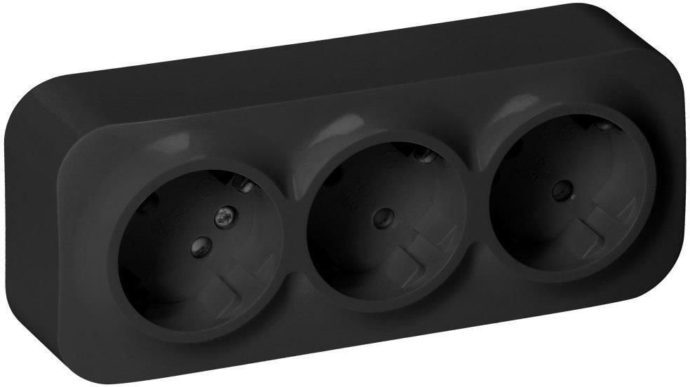 Gniazdo potrójne ToDo 2P+Z Schuko IP20, 16A, 230V AC, czarny, 10 sztuk