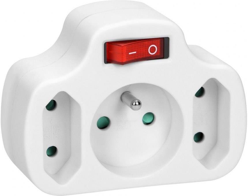 Potrójny rozgałęźnik z wyłącznikiem głównym i jednym gniazdem z uziemieniem oraz dwoma gniazdami na wtyczki płaskie. Występuje w kolorze białym. Specyfikacja techniczna Typ gniazda: 1 x 2P+Z / 2 x 2P/II Prąd: 16A Stopień ochrony (IP): 20 Liczba gniazd sieciowych: 3 Standard gniazd: French (typ E) …