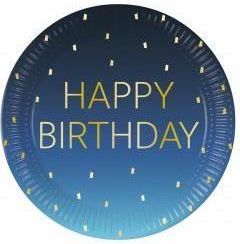 TALERZYKI PAPIEROWE BLUE HAPPY BIRTHDAY Średnica: 23 cm Materiał: papier Ilość sztuk w opakowaniu: 8 szt.